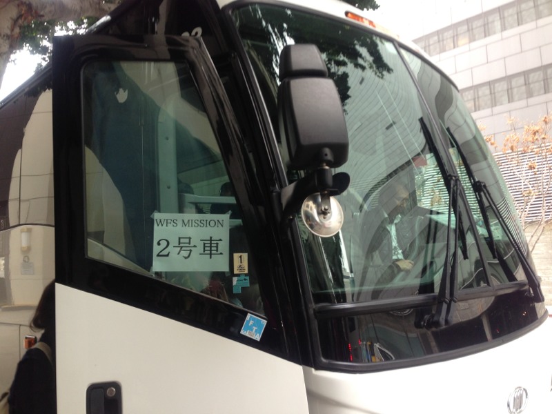 プレイヤーチャペル組、バスにのります。パウロ秋元牧師がご一緒にアナウンス、指示をしてくださっています。