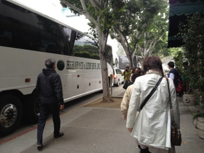 バスに皆乗り込みます。 ユニバーサル15人、路上10名です。 US