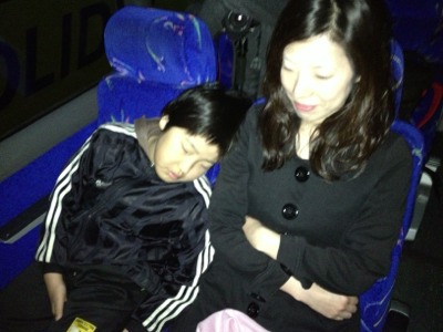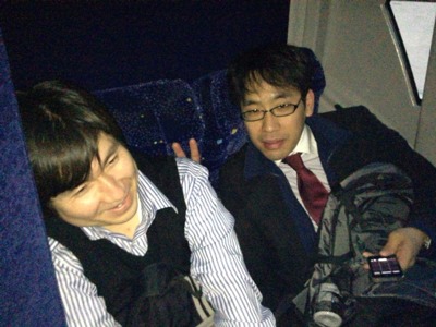 ご自分の写真に大受けしているみぎわちゃん。 その横で熟睡しているサレム君。 1号車