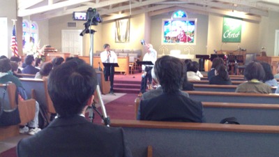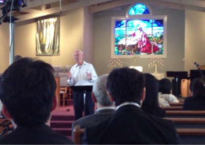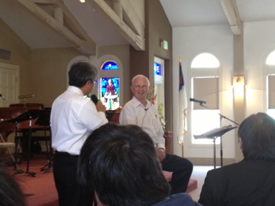 出版関係のお話に熱心に、前傾姿勢で聞き入っていらっしゃいます。雲虹出版、ペテロ永藤牧師