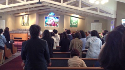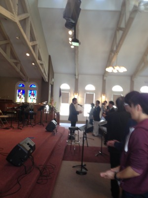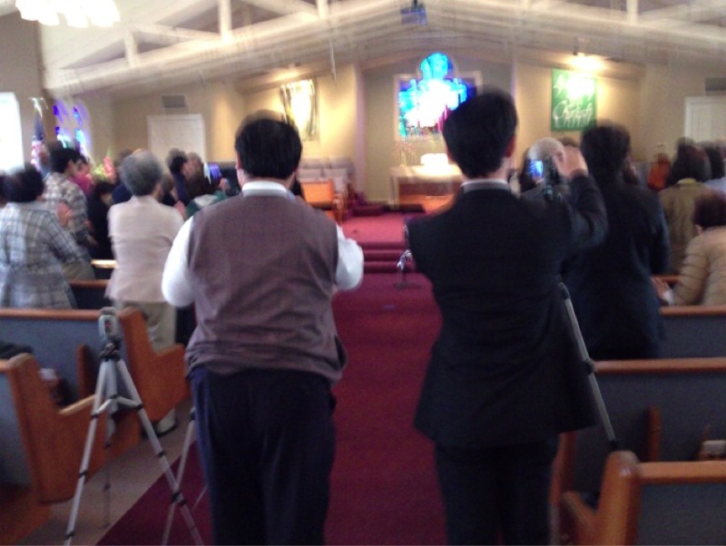 賛美です。カメラを回すペテロ永藤牧師とペテロ樋口さん。カメラは雲虹のカメラです。