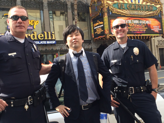 捕まってる訳ではありません! 警官とパチリ! ハリウッド組
