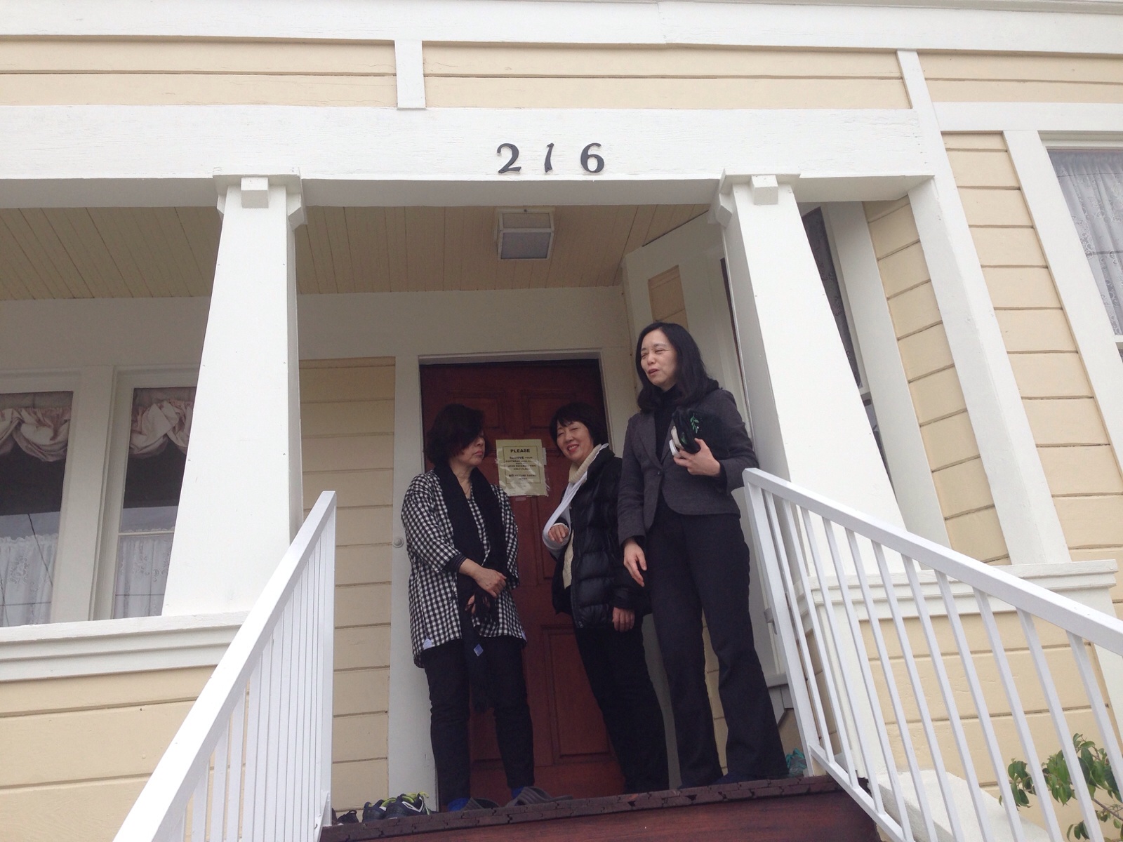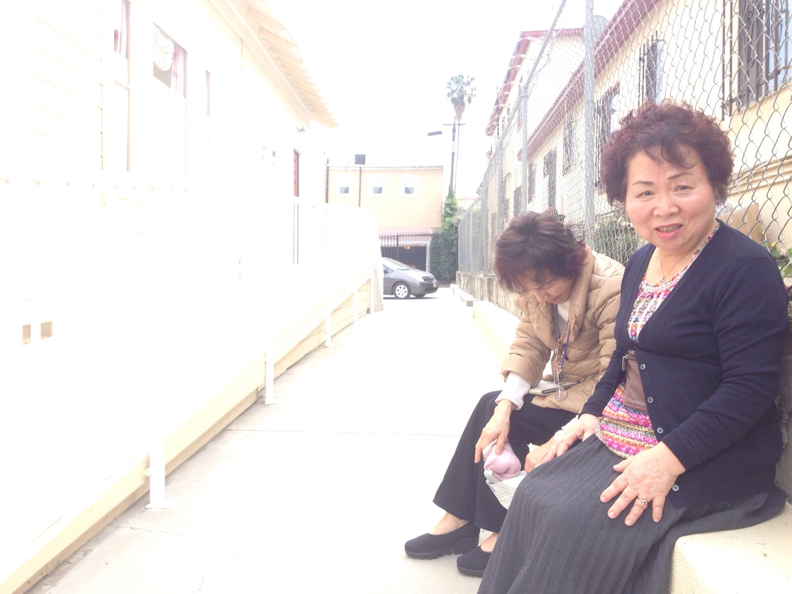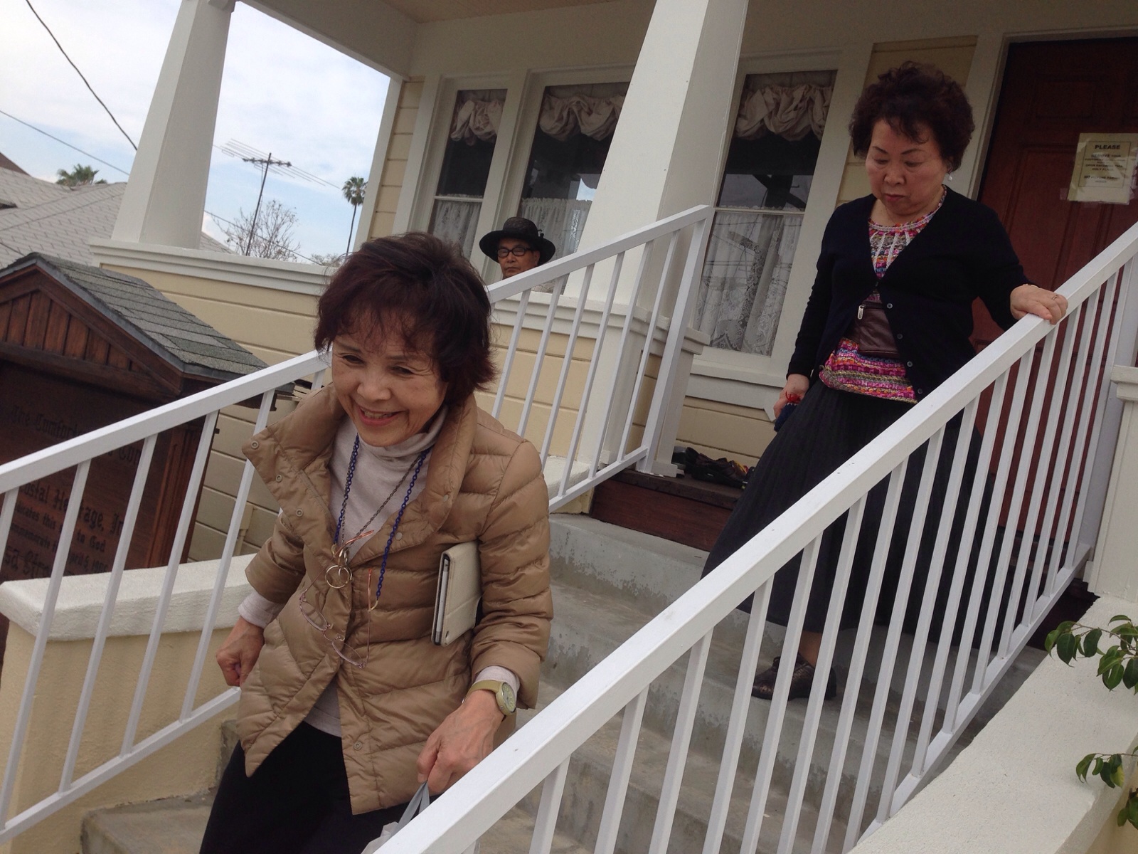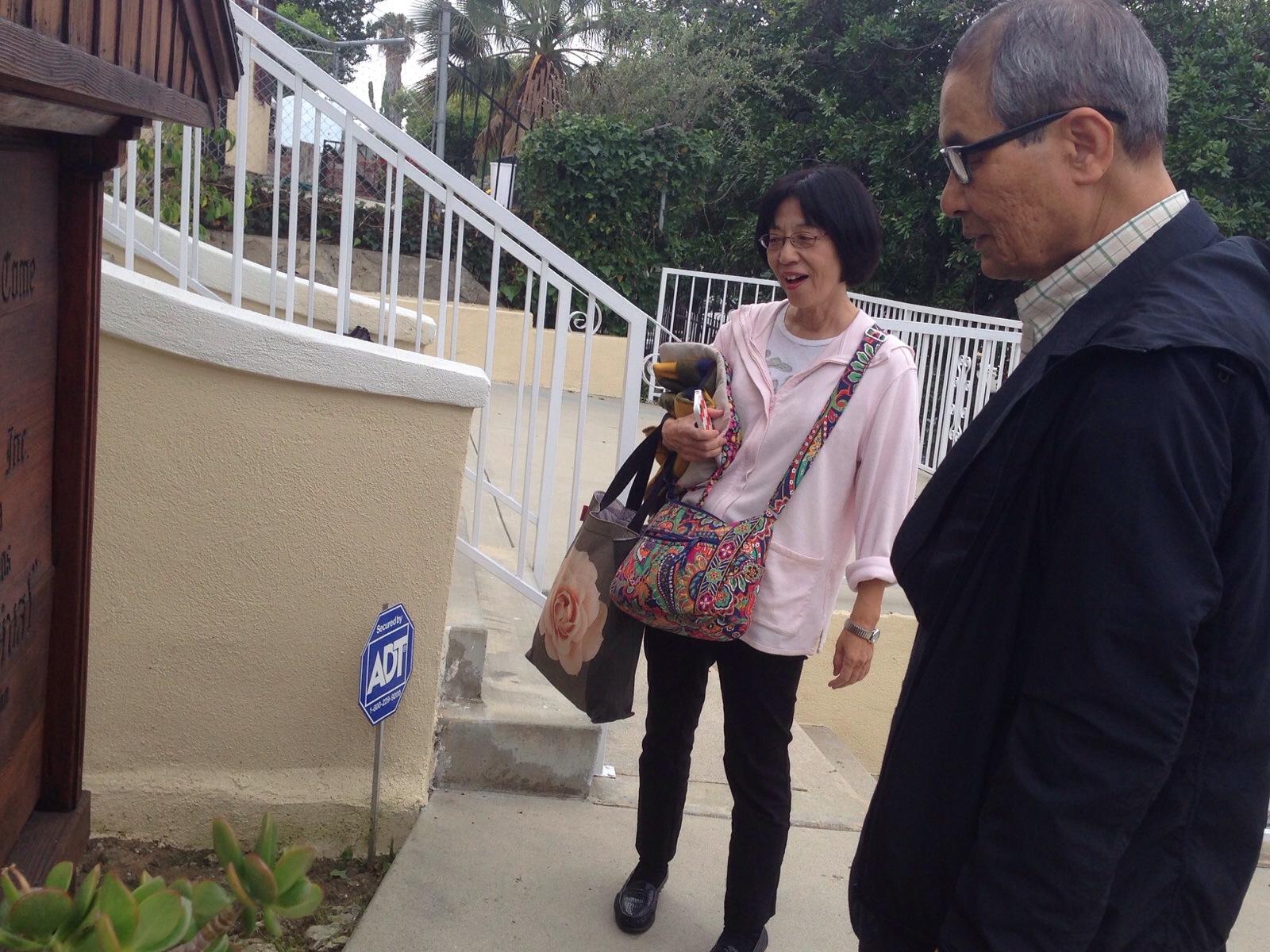 ラ・スボーザのお二人、先ほどは中、今度は外とお祈りされています。ボニーブレアハウス組