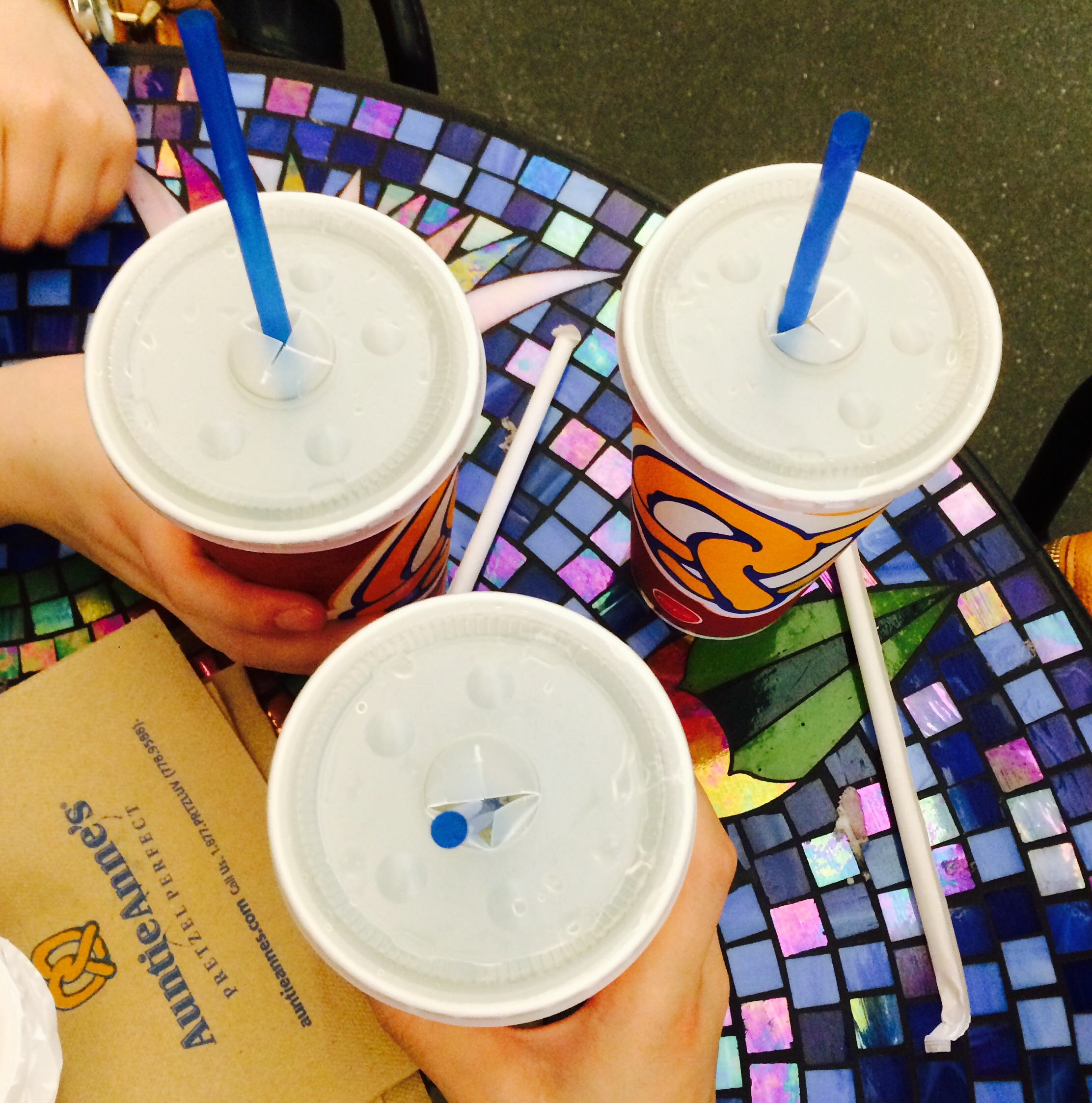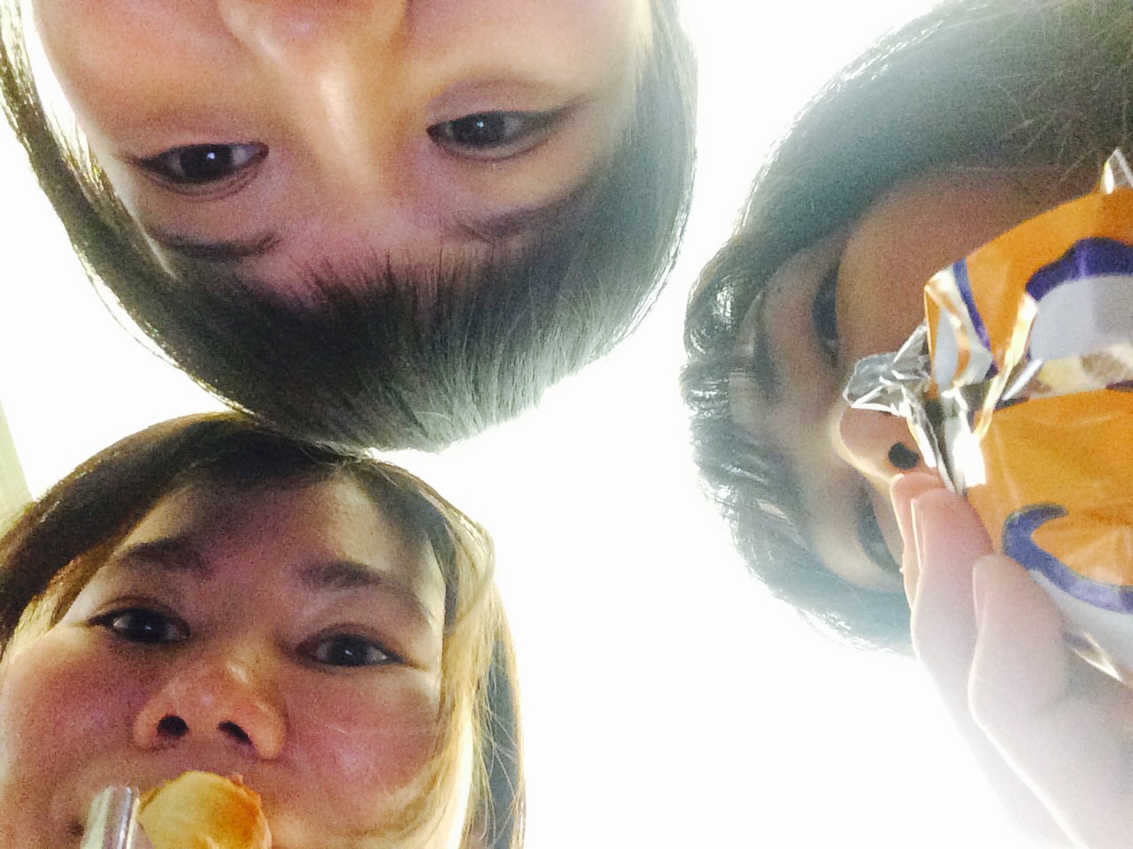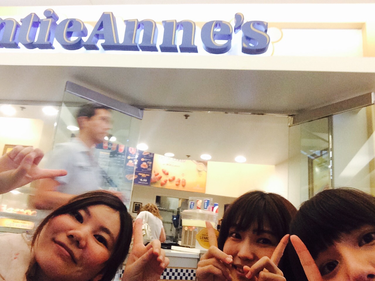 シオンとジョイとまりちゃんでランチ*\(^o^)/* なんかね、ホットドッグ?を チーズにディップしながら食べました! yummy♡ ハリウッド組