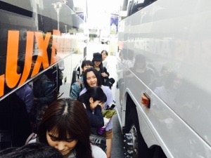 ホテルへ戻ってゆきます。外で待っているみなさん! ボニーブレアハウス組
