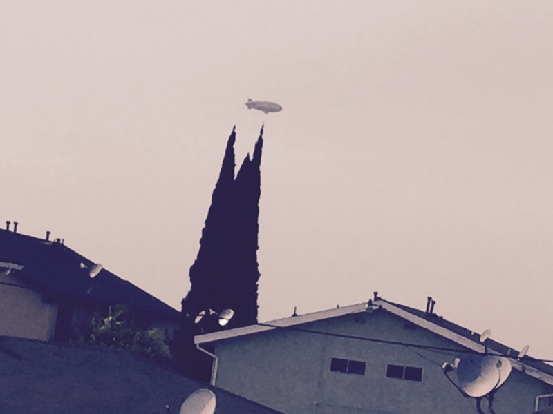 Good year Blimpだそうです。グッドイヤーの宣伝バルーンとでもいいましょうか。ボニーブレアハウスから見えました。