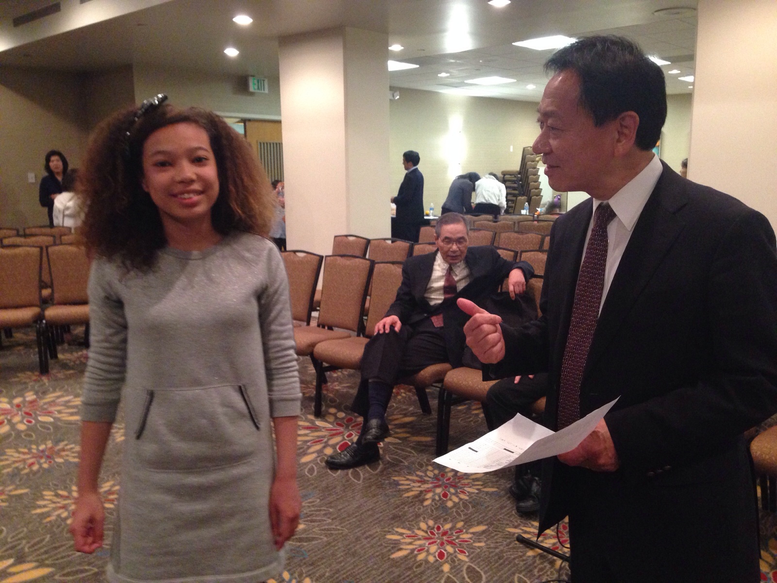 Jeshurun is coming to Mr. Peter Kubota. Does she know the person who is able to talk in English?