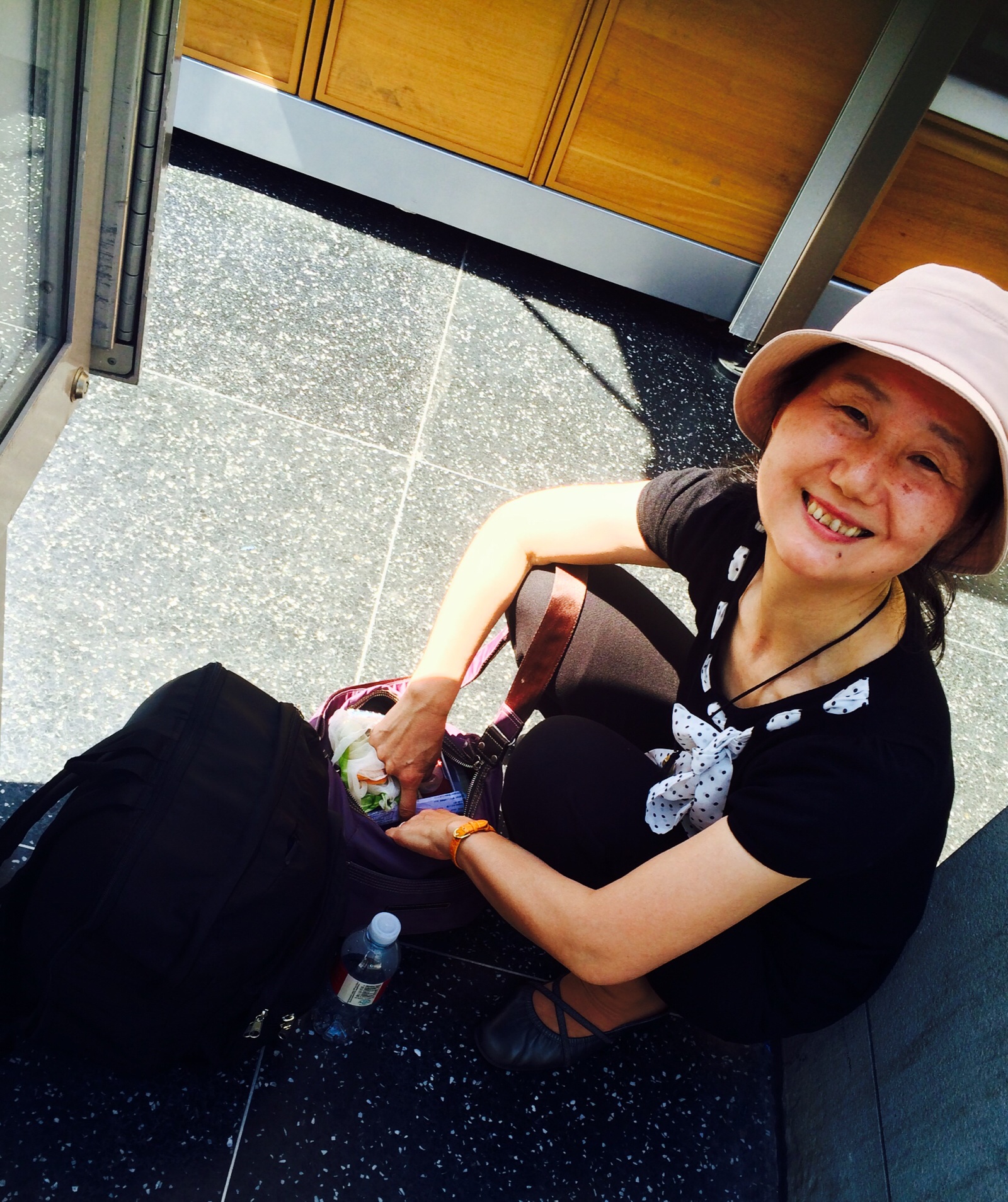 日陰に避難中の小野島さん、 携帯の充電がぁ〜∑(゚Д゚) ハリウッド組