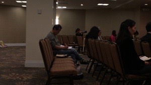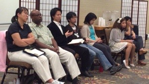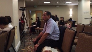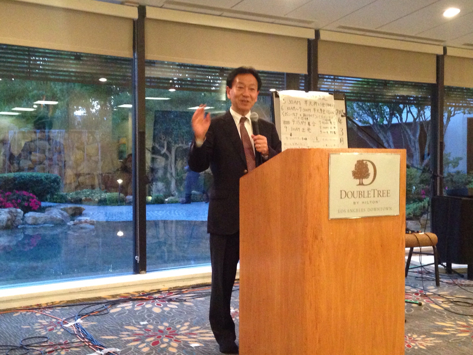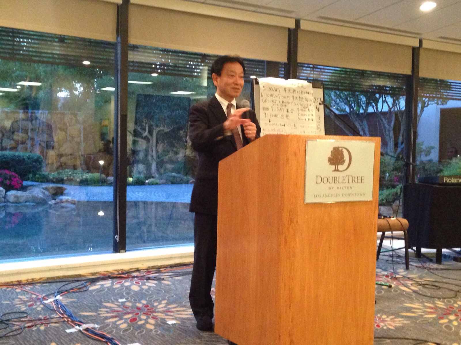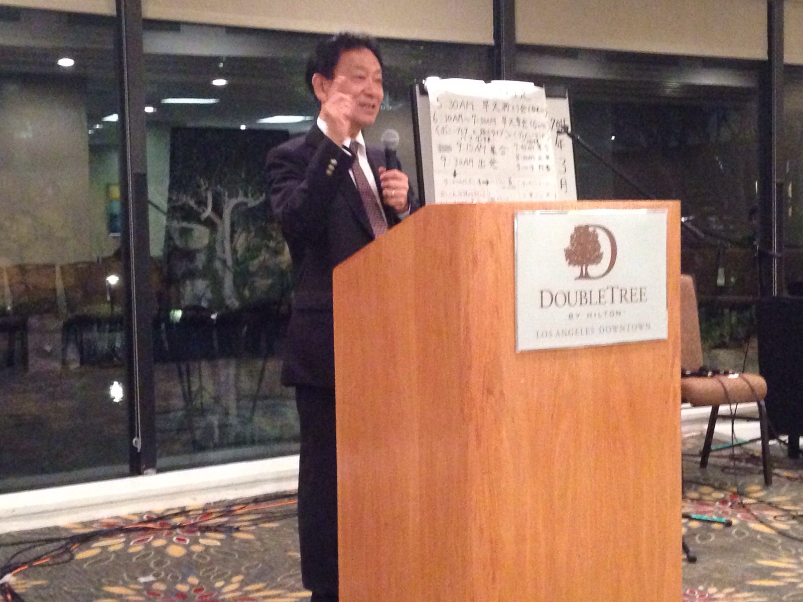 サンディエゴの竹下さん、 熱心にメッセージを書きとめて おられます!