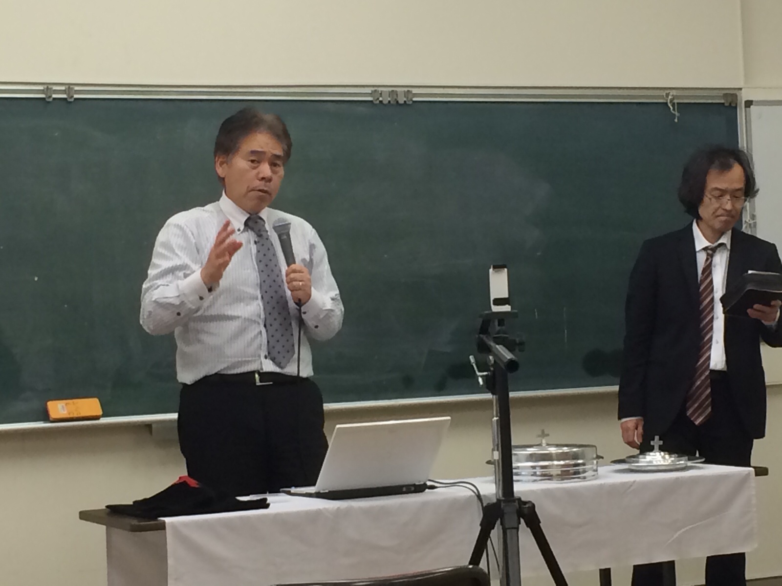 北米ミッションスタッフ小代さん。インターナショナル礼拝後、チーム祈祷会があります!