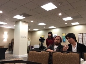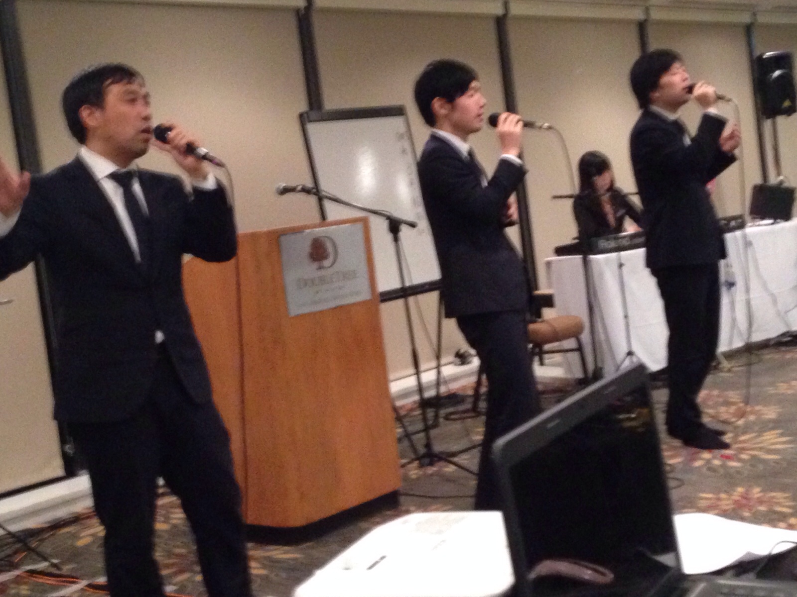 お友達が来られて、賛美の歌詞やメッセージを通訳しておられます。