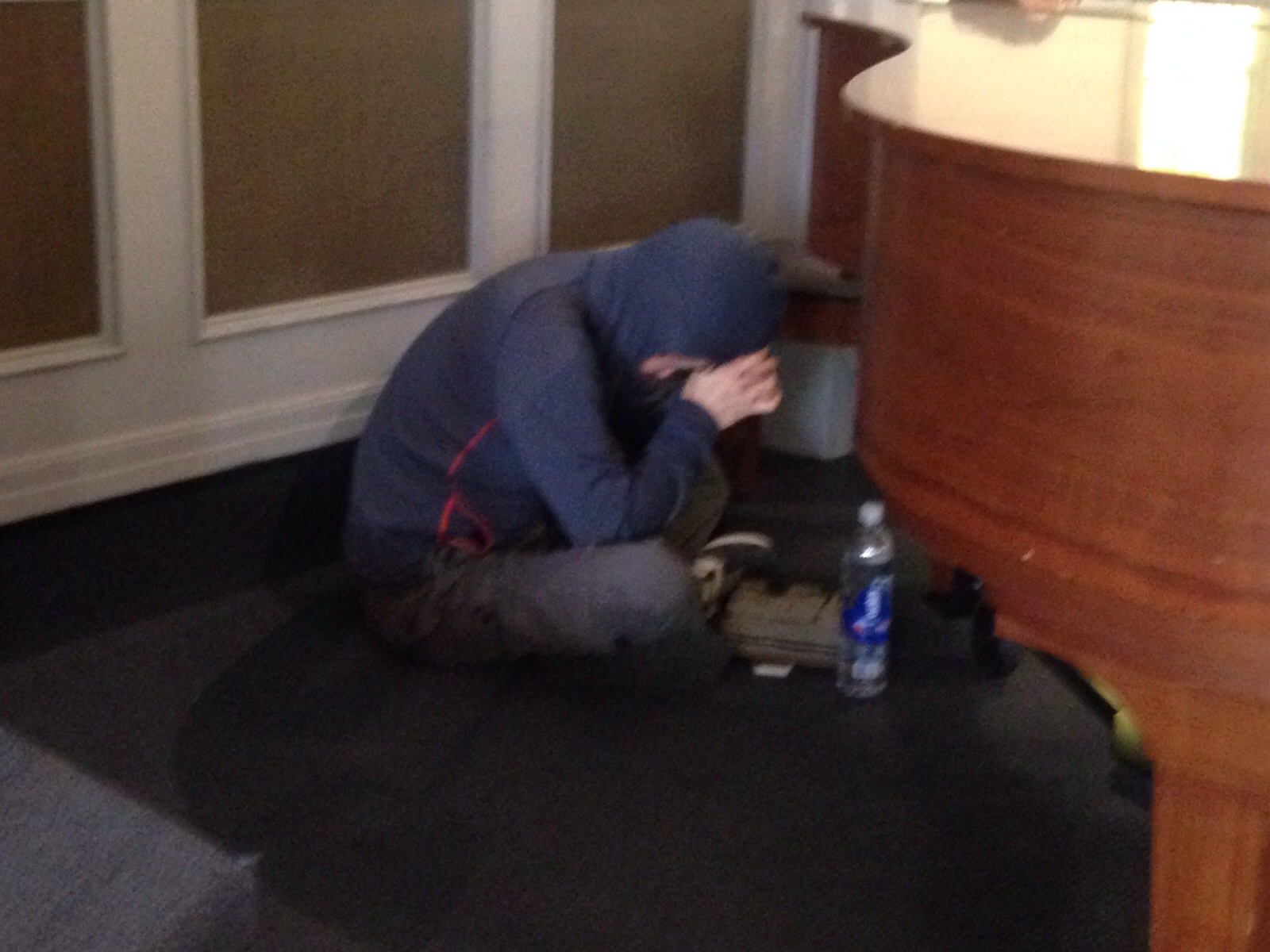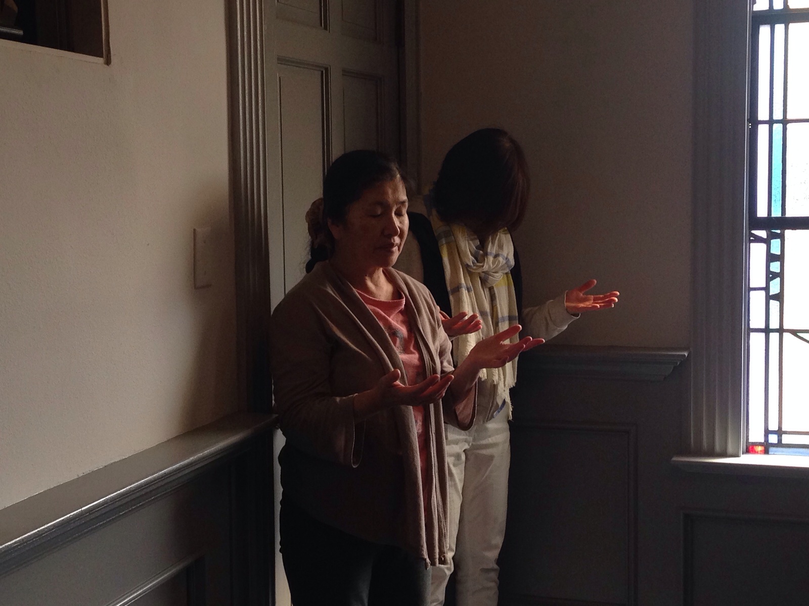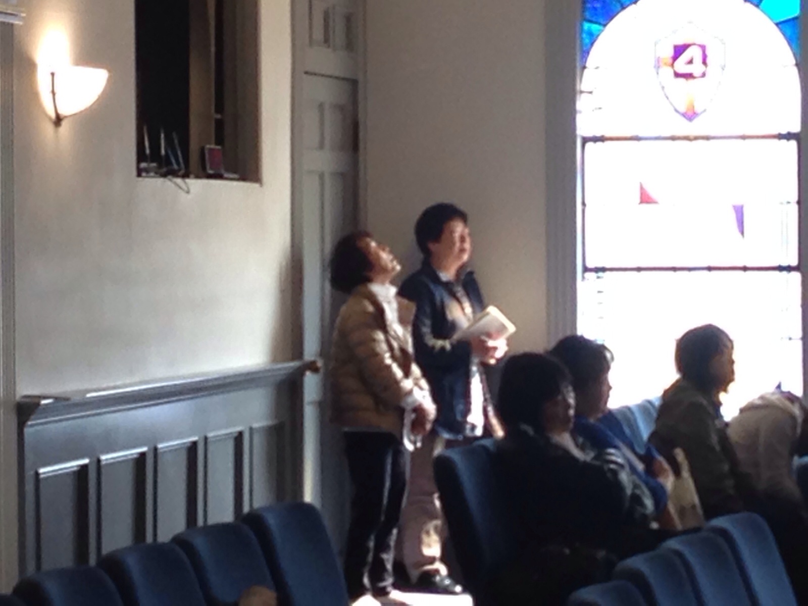 ピアノの近くで祈る人達。賛美の祈りでしょうか。ここも四隅のひとつです。