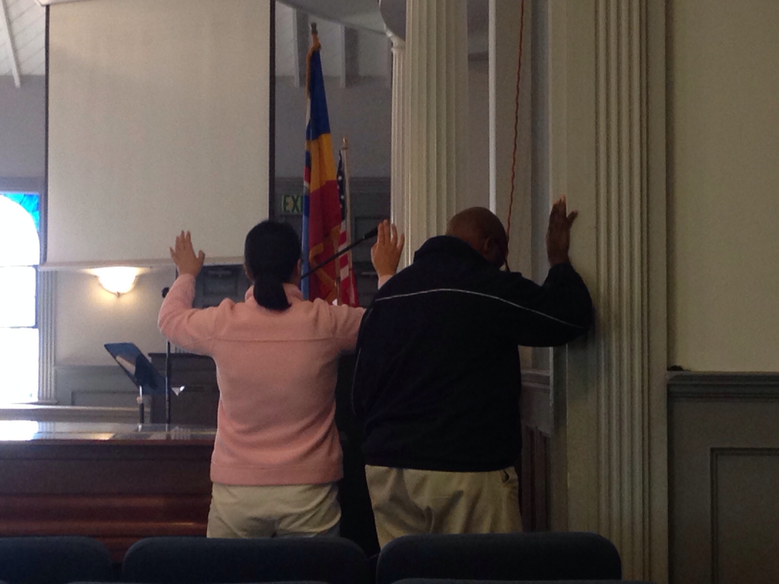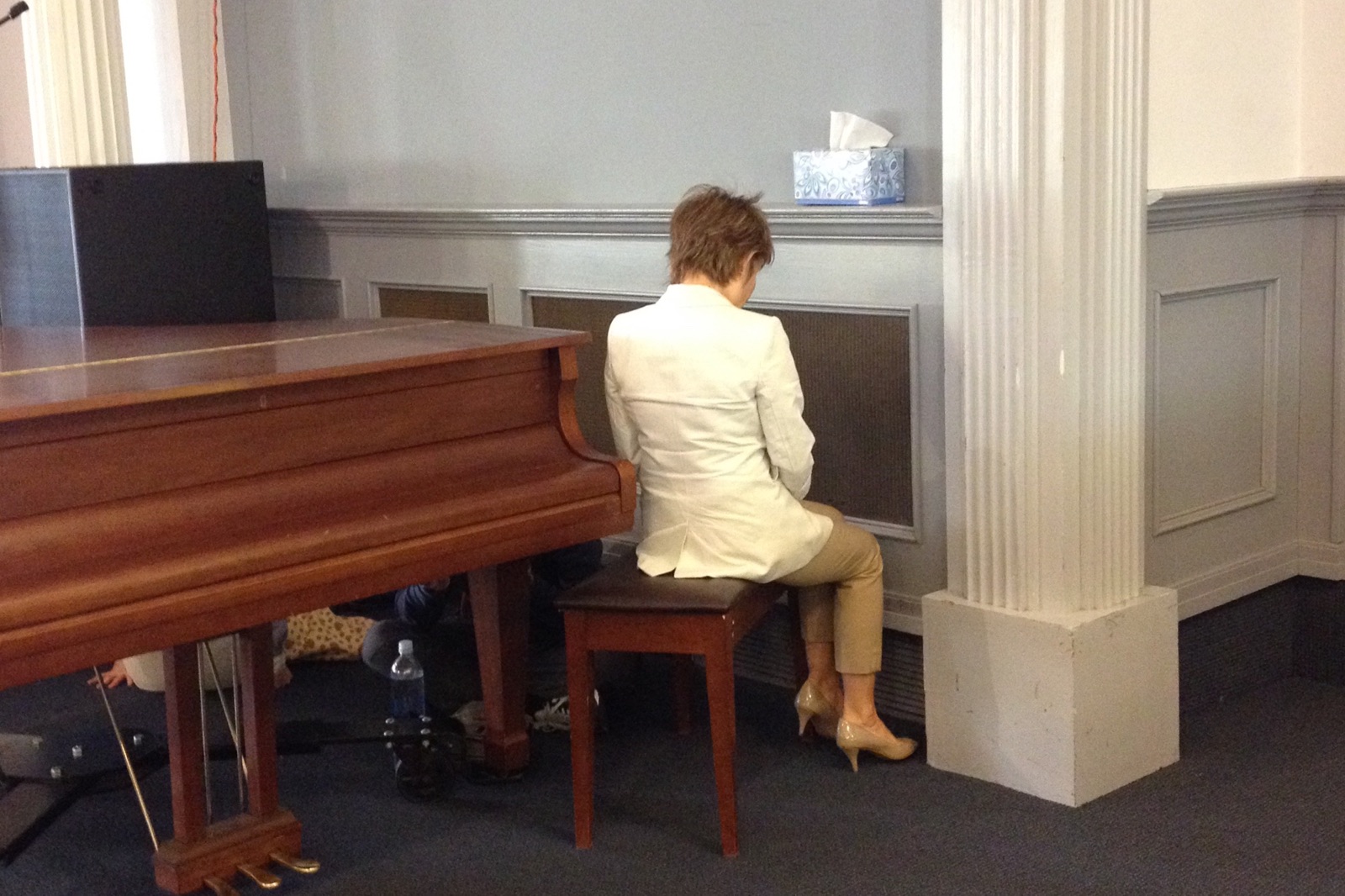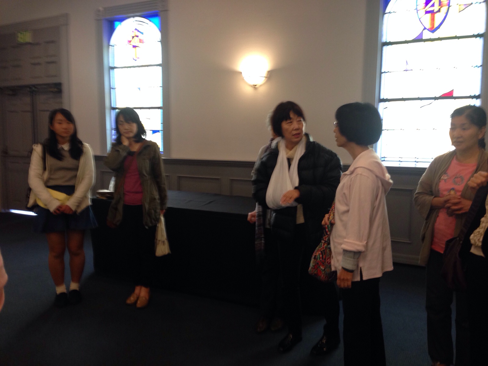 ピアノの近くで祈る人達。賛美の祈りでしょうか。ここも四隅のひとつです。
