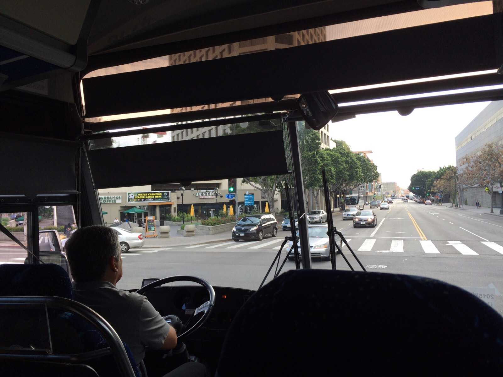 渋滞している様です。 バスがゆっくりゆっくり動いています。