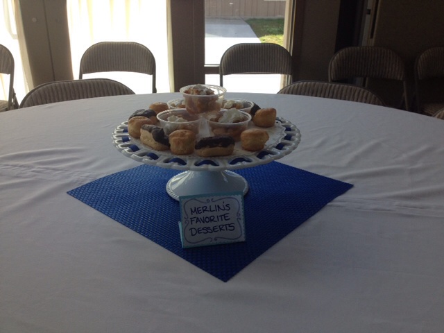 それぞれのテーブルには、シュークリームが、置かれていましたが、そこには、(マーリンの一番好きなデザート)と書かれたカードが!マーリンさんの大好物は、シュークリームだったのですね! (L.A)