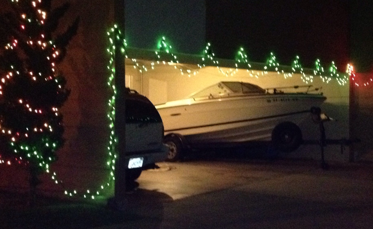 夜になると電飾のツリーやトナカイと並んでお目見えです。