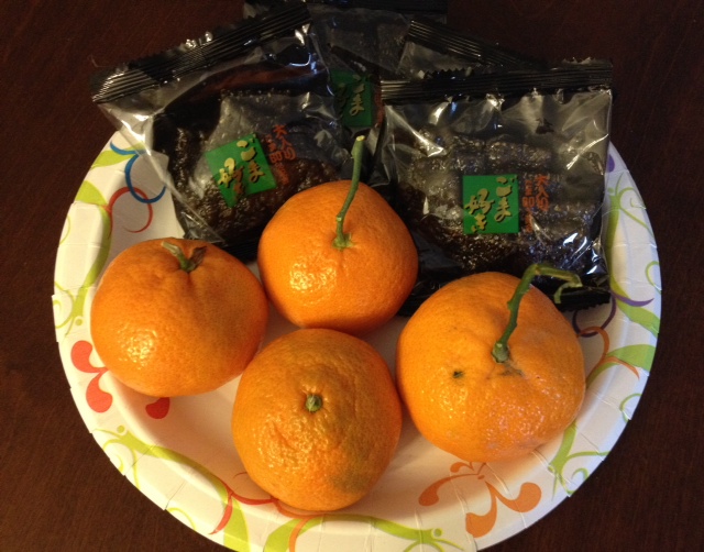 ごませんべいと薩摩みかんでおもてなし。^^