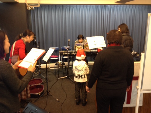 マラカスとサンタクロースの帽子をかぶって、ダビデくんも参加しています。
