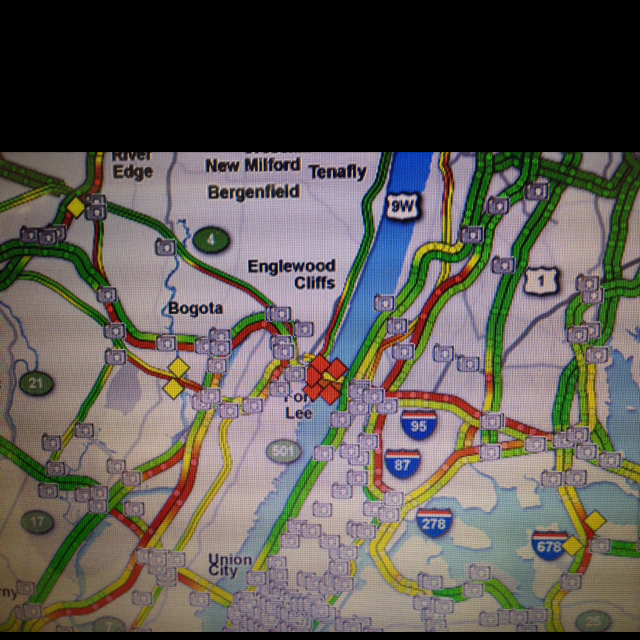 空港へ行く途中のワシントンブリッジで今朝大事故あり。