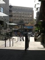 広場の向こうに、かすかなHOLLYWOODサイン。