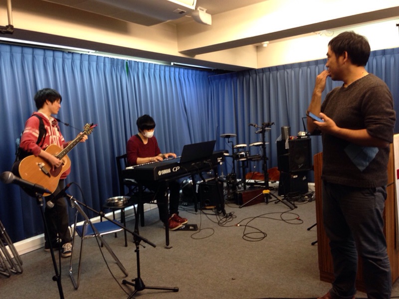 23:00 今日も「祈りの時間」無事終了。真境名さん、映像チェックしてくれてます。 Kobayashi