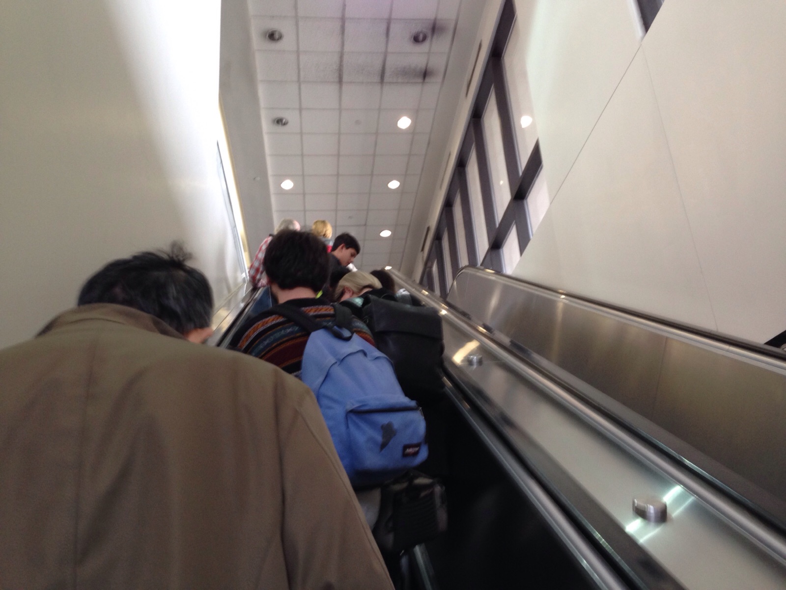 しかも、動く歩道のような、あれがない!ゲイト、すごい、遠い! Kobayashi
