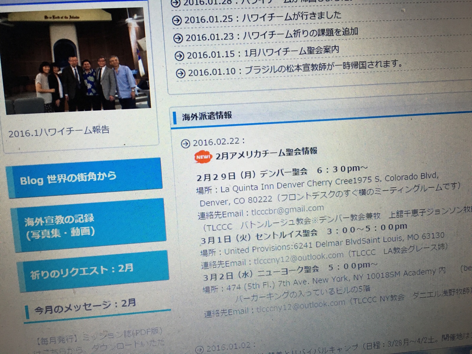 アメリカチームの聖会情報をミッションHPにアップしました! Akemi.M