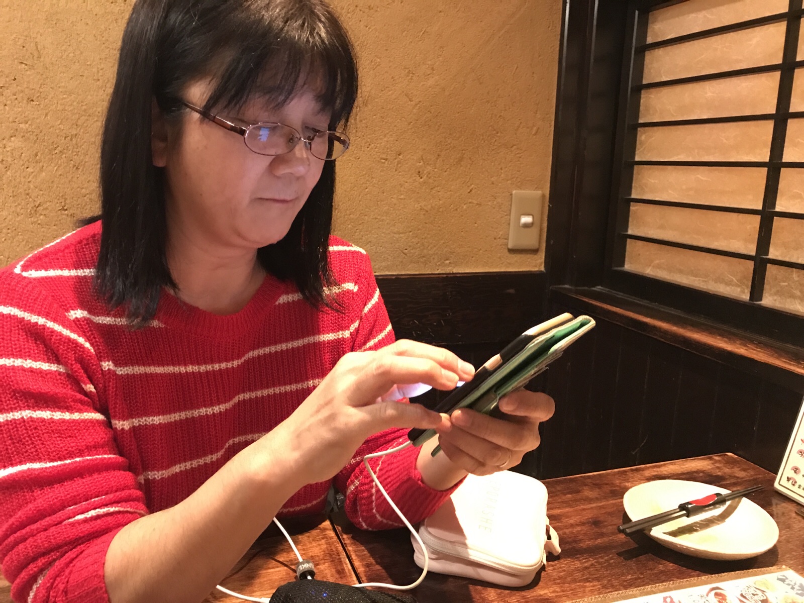 おわって、ジョイさんになっておせんべ食べています。ウラノス お