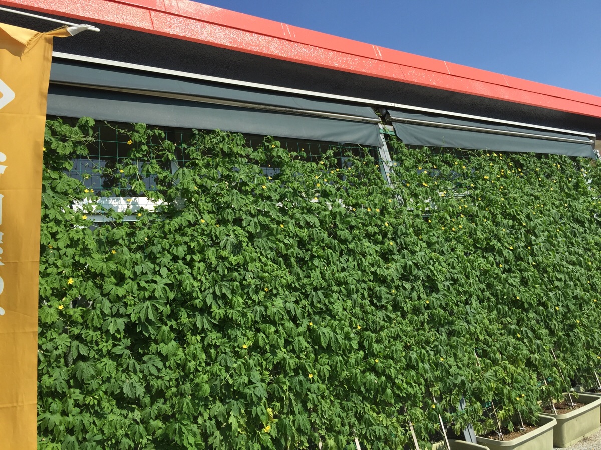 福井まで来ました。 アイスを食べて涼みます。 ゴーヤのカーテンが涼しく感られます。
