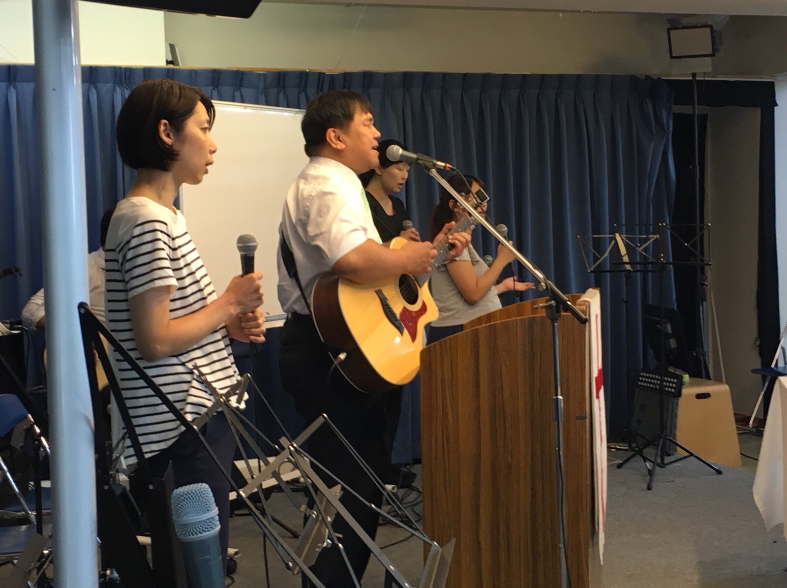 賛美が始まりました! 賛美リーダーは前田さんです。