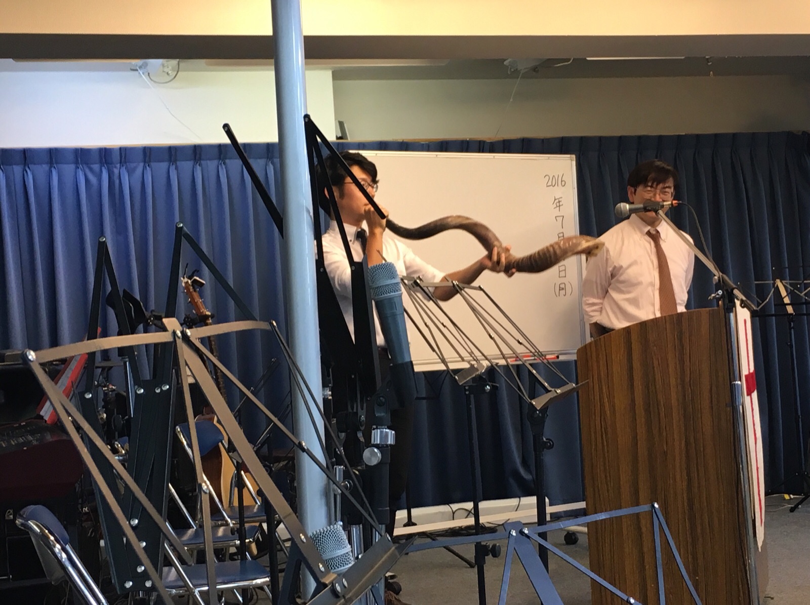 角笛が吹かれました! 月曜第二礼拝がスタートです。