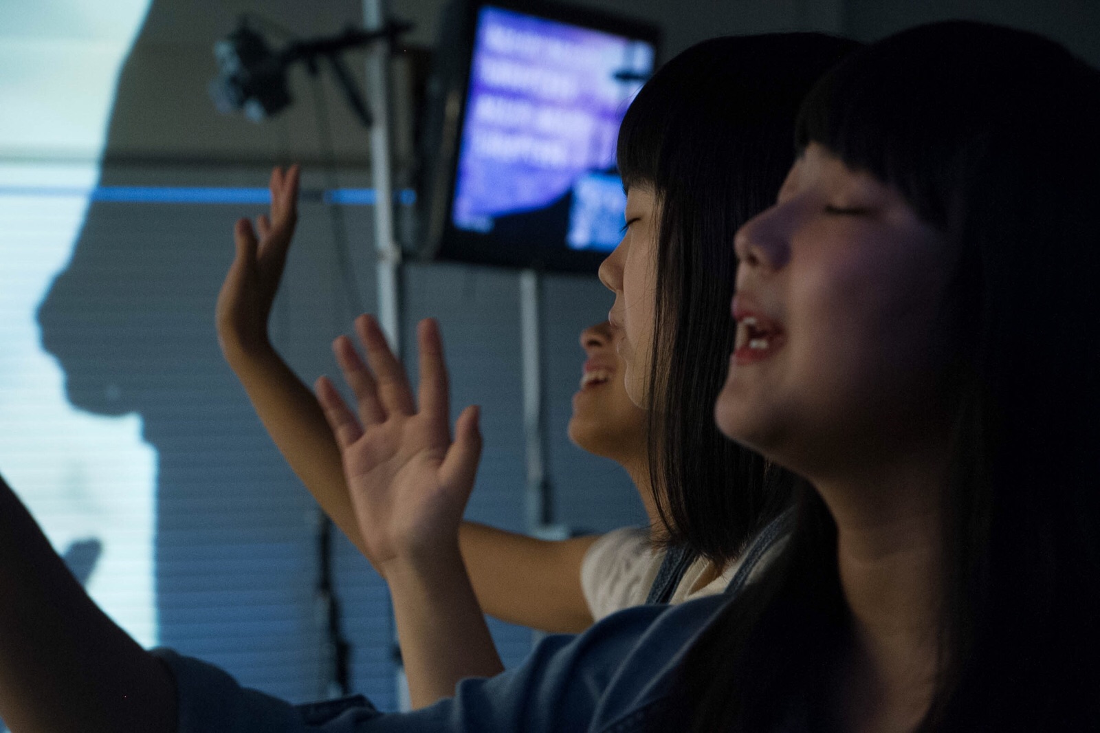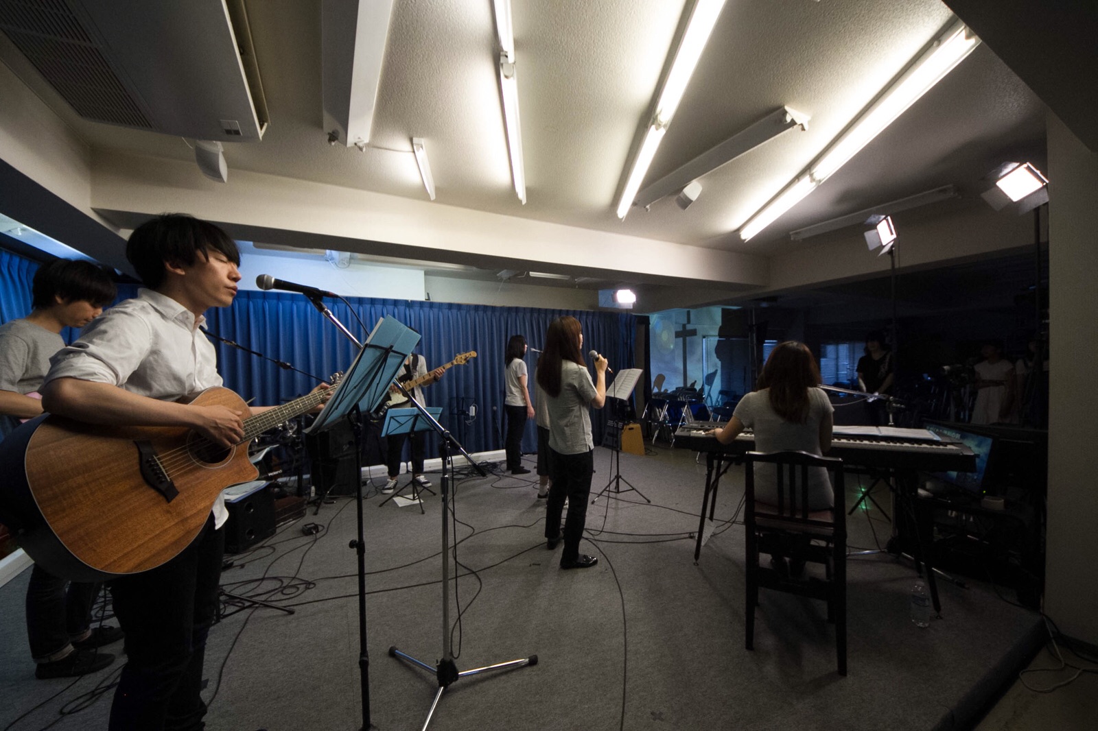 若者たちが礼拝しています(^ω^)一緒に賛美。嬉しいですね〜shoko