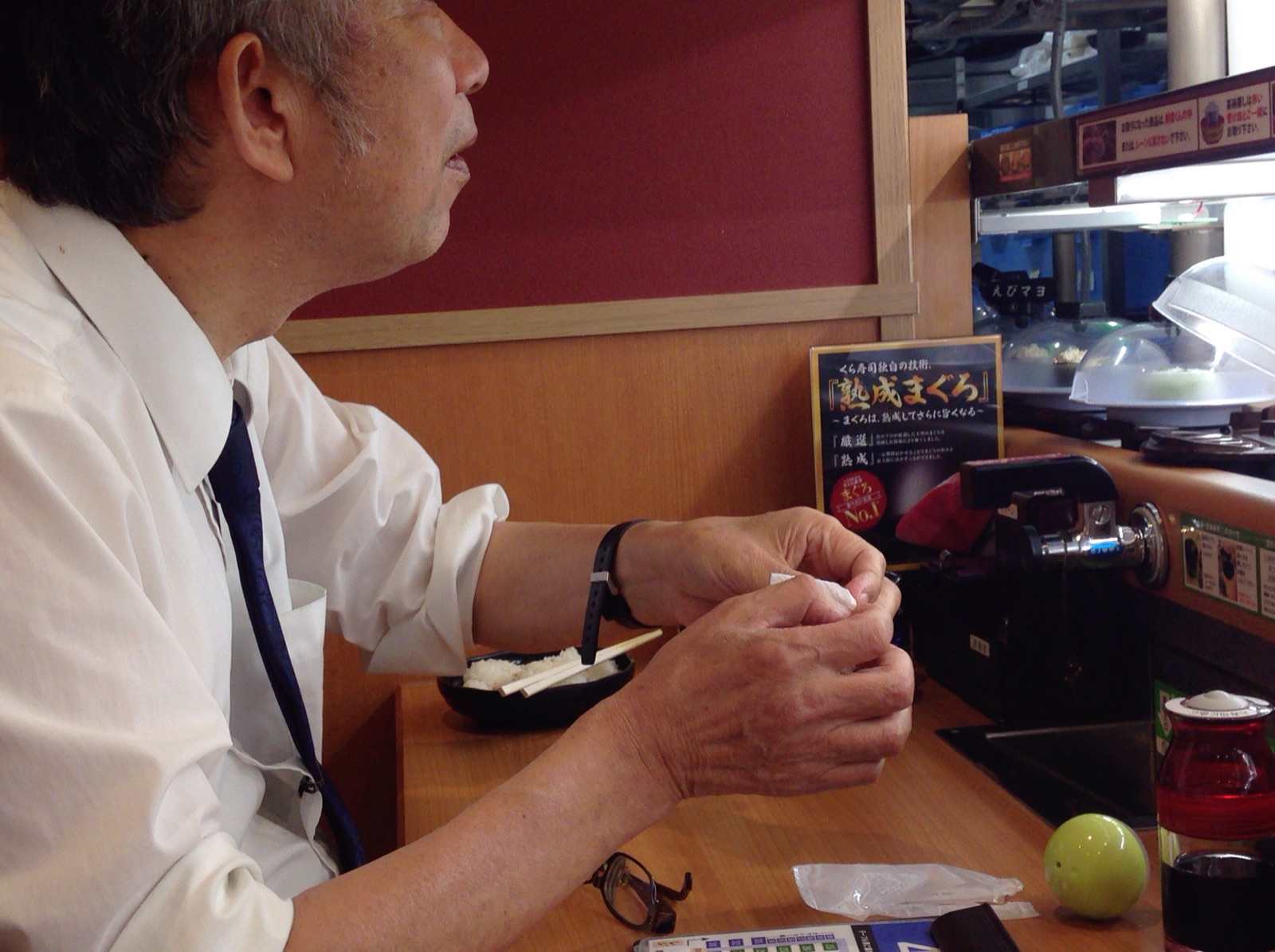今、弘前に着いて、くら寿司にいます。 Kobayashi