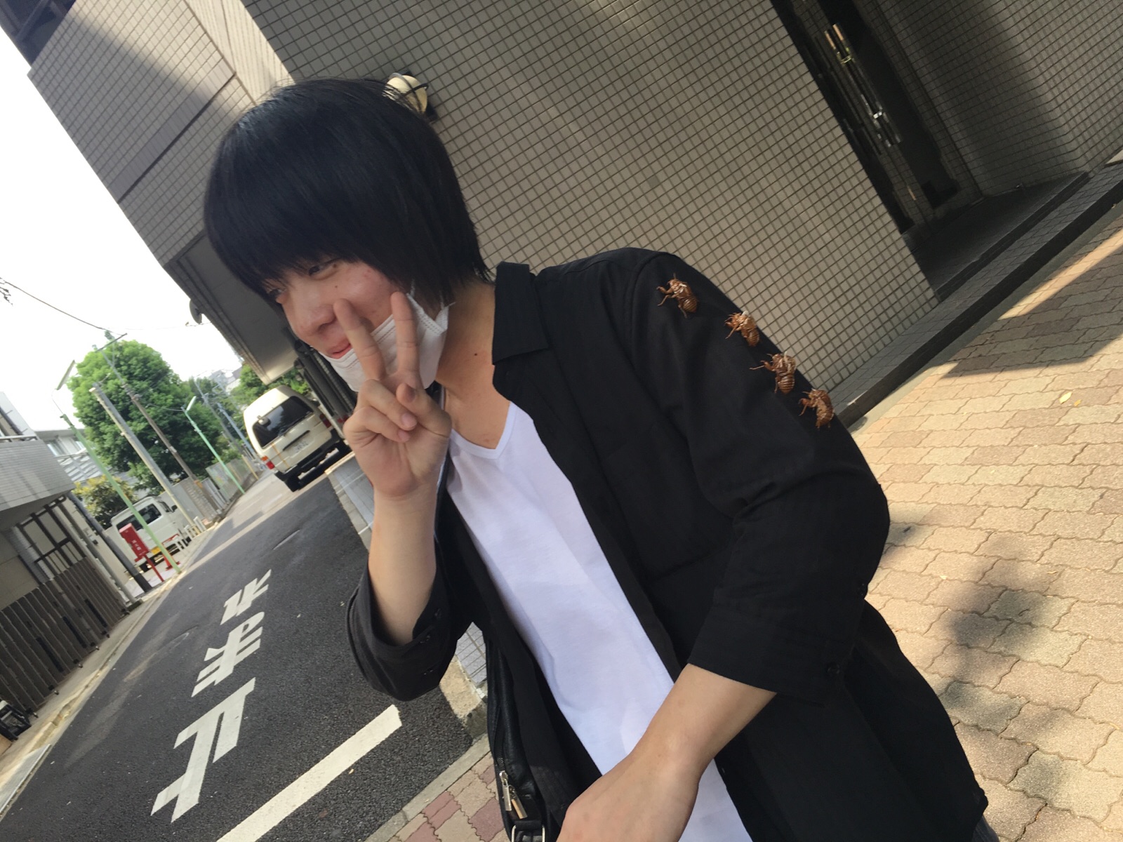 教会前に来たら、クロちゃんがいます。 腕に付いてるの何だろう? Kayano