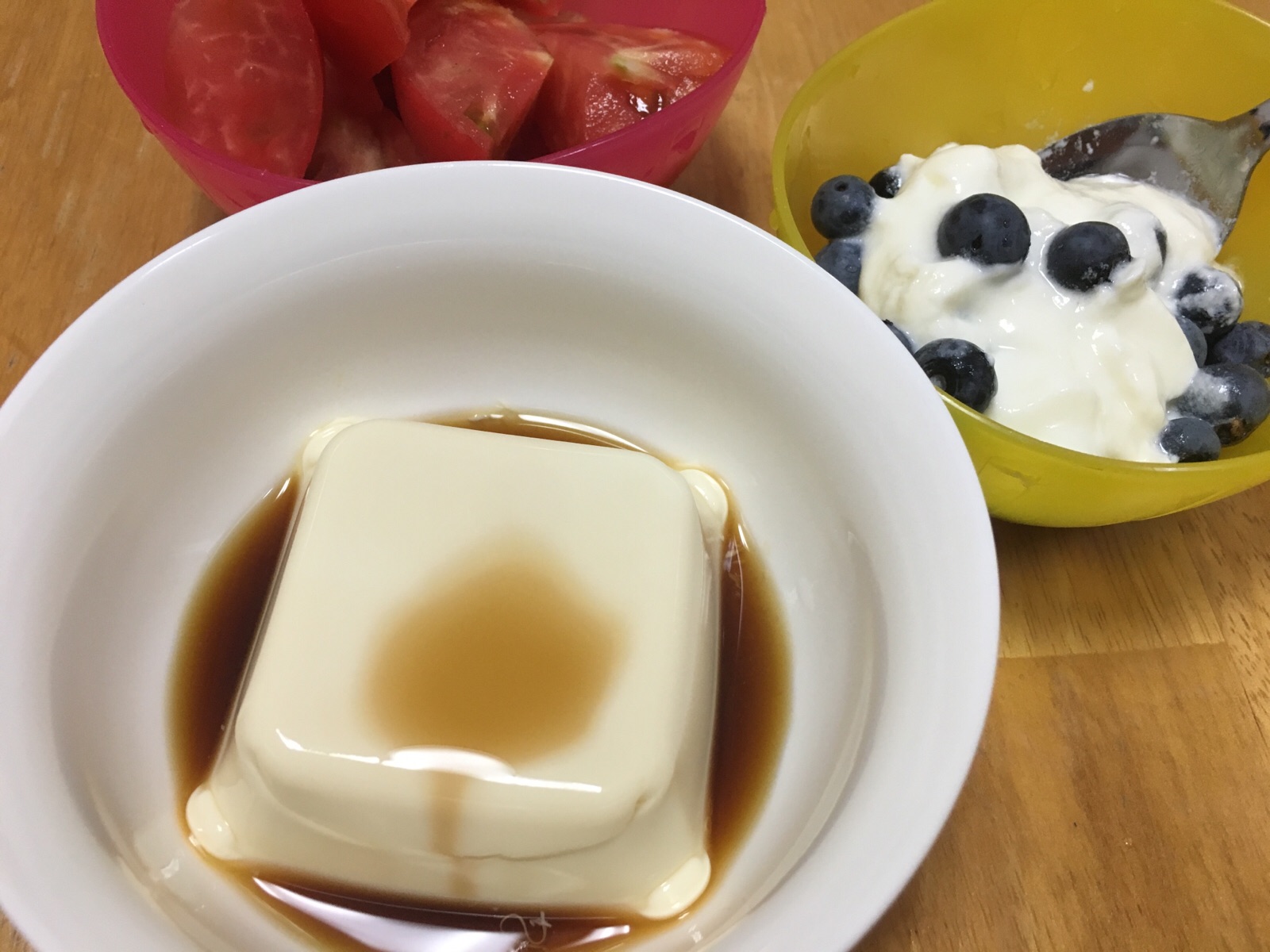 今日の私の朝ご飯でした。 最近、気に入ってるプリンみたいなお豆腐。(^_^) Kayano
