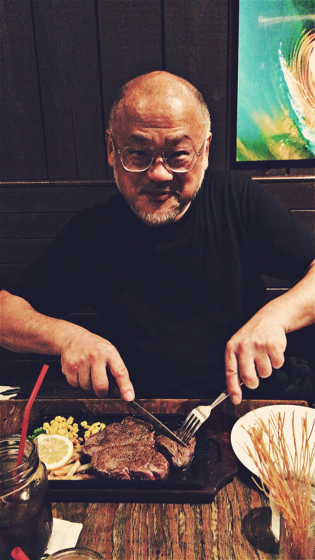 間瀬さんとこころごすぺるの打ち合わせをしてきました。 ステーキをご馳走になっちゃいました! ひかる