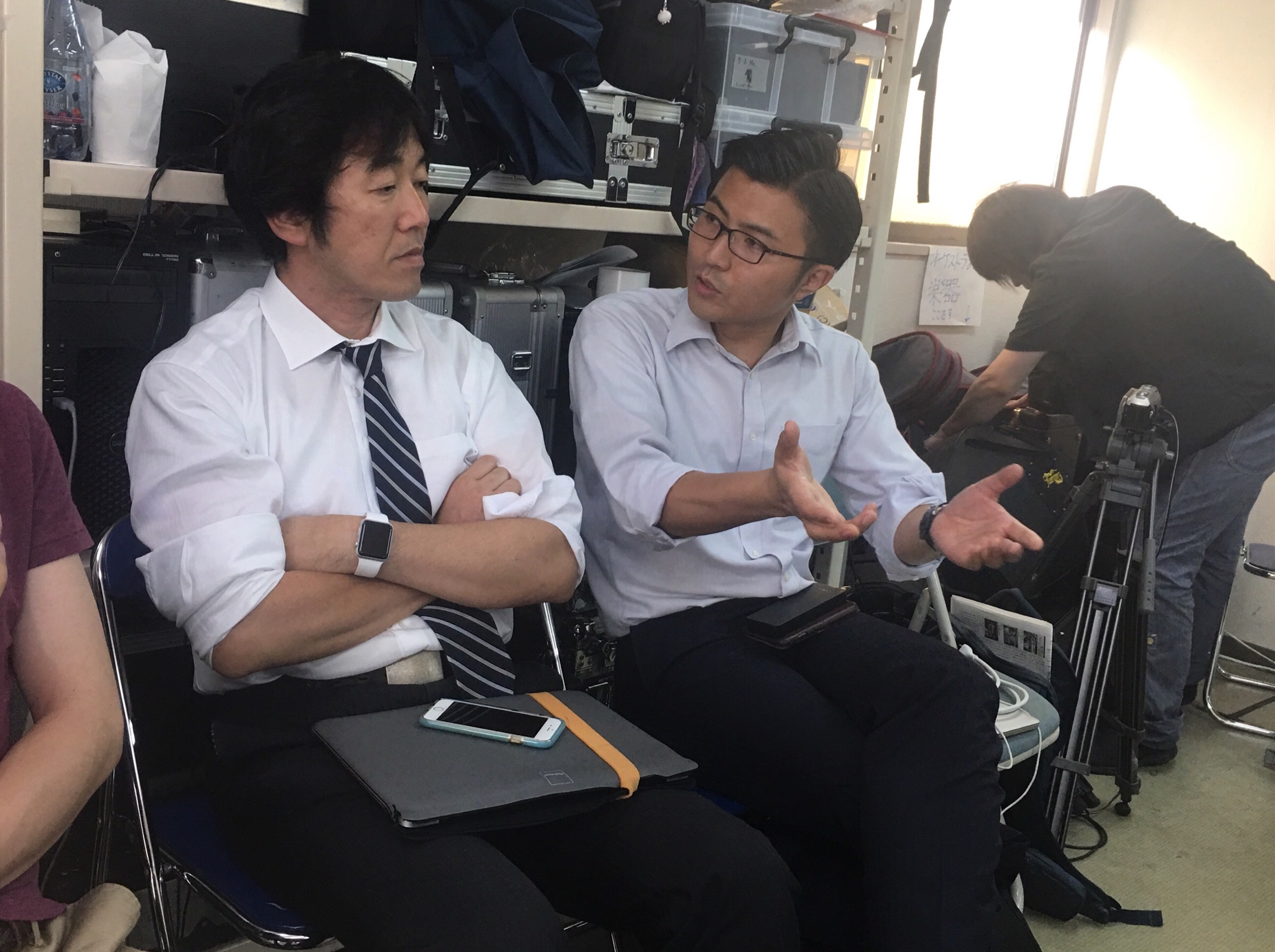 プロデューサーの皆さん、照明、映像について話し合いをしています。 Gifts Hisa
