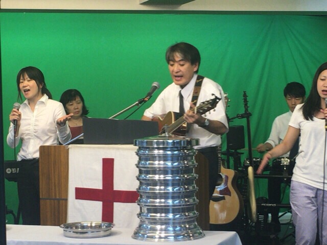 日曜第一礼拝が始まりました! 山川さんが賛美を導かれます。