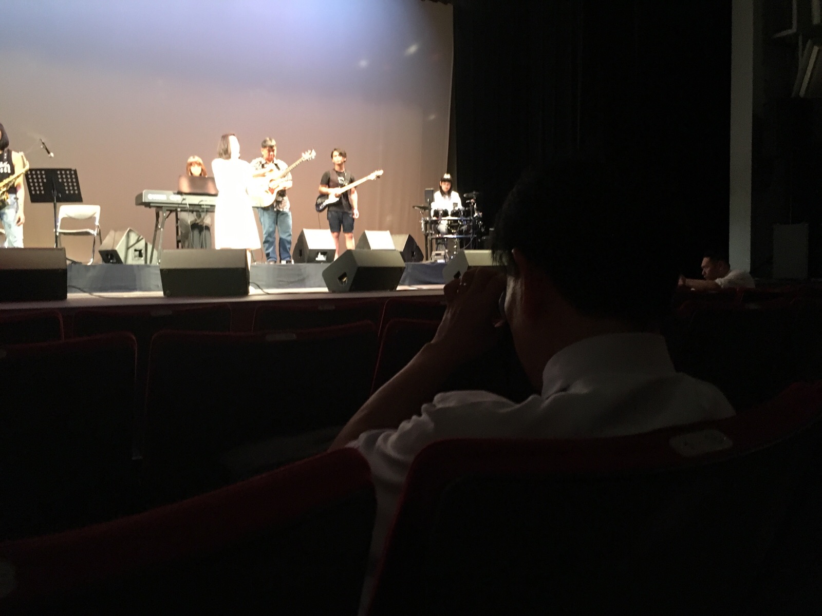 暗くてわからないかと思いますが、弓野さんが来られて写真を撮ったりています。 裏方テモテ