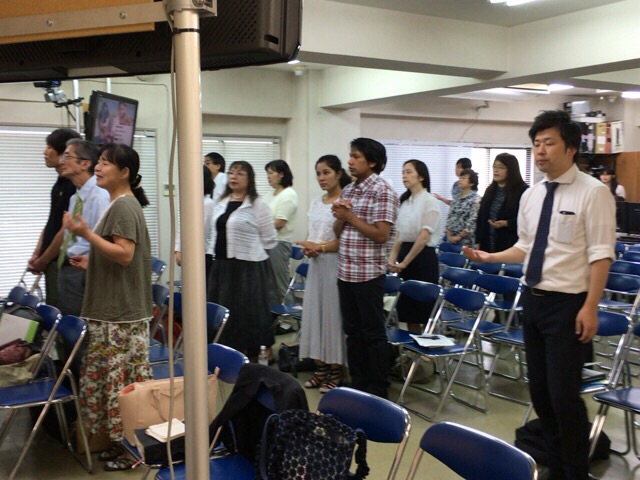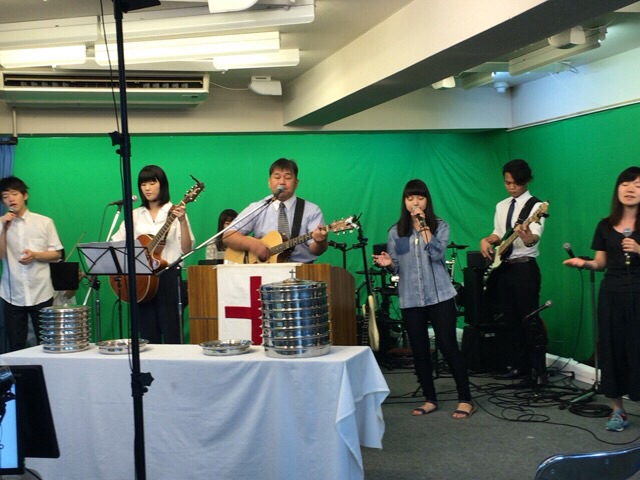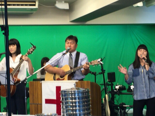 東京アンテオケ教会の牧師である秋元さんが導かれる賛美の時です。