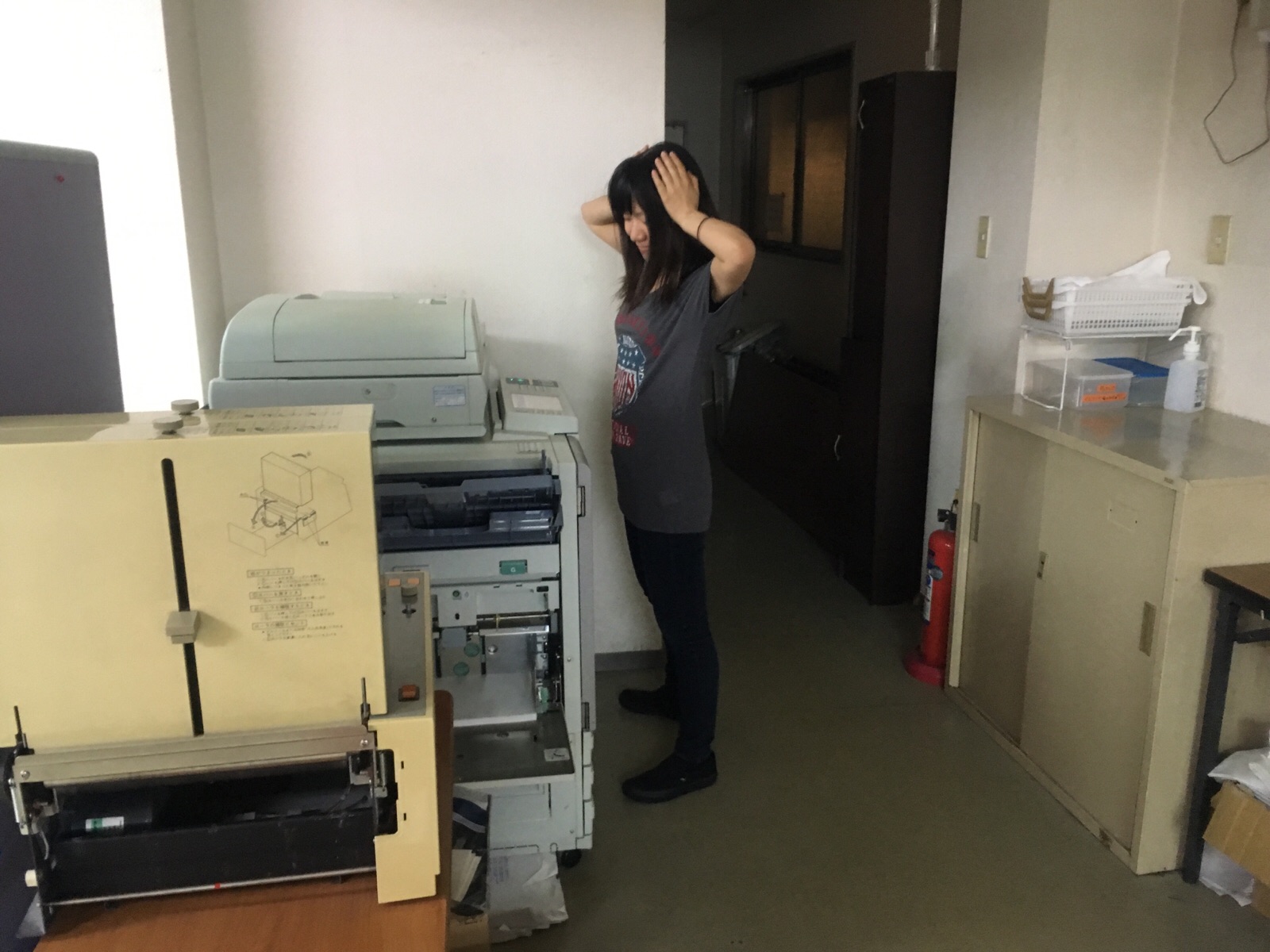 休憩室のドアにポスター貼らしてもらっています。1人の人が関心をもっています。masukawa