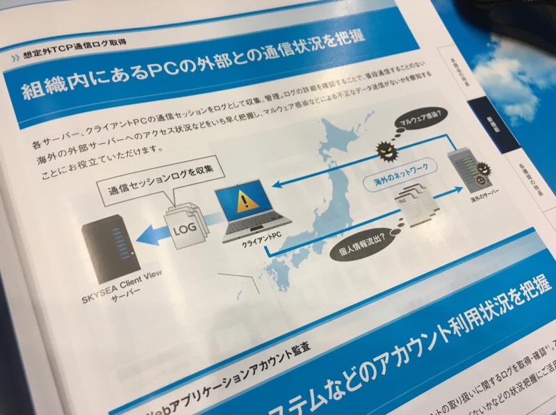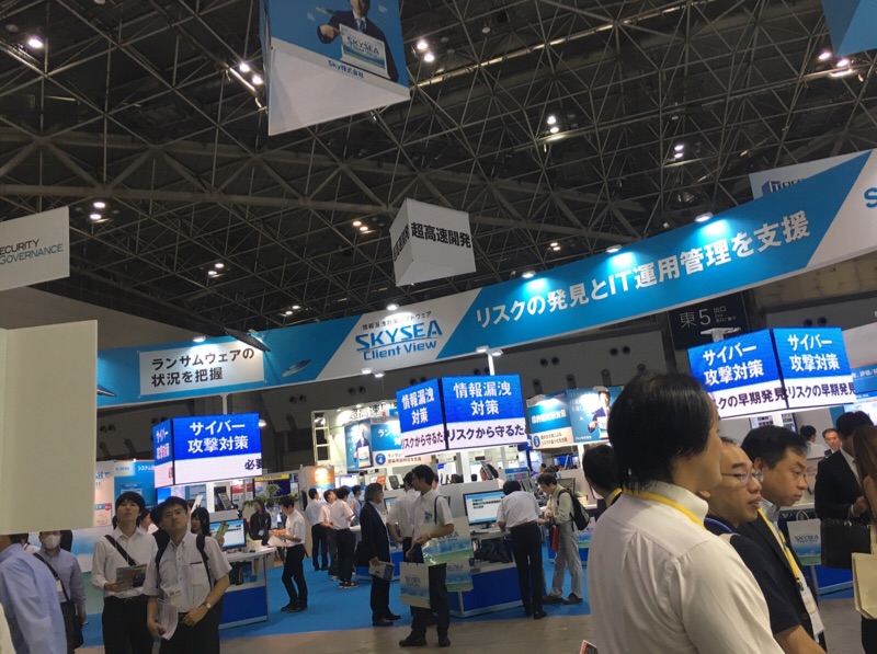 こちらのブースではサーバー攻撃に対して、ウィルスに対して、出どころを素早く探知する機能について説明しています。 peter