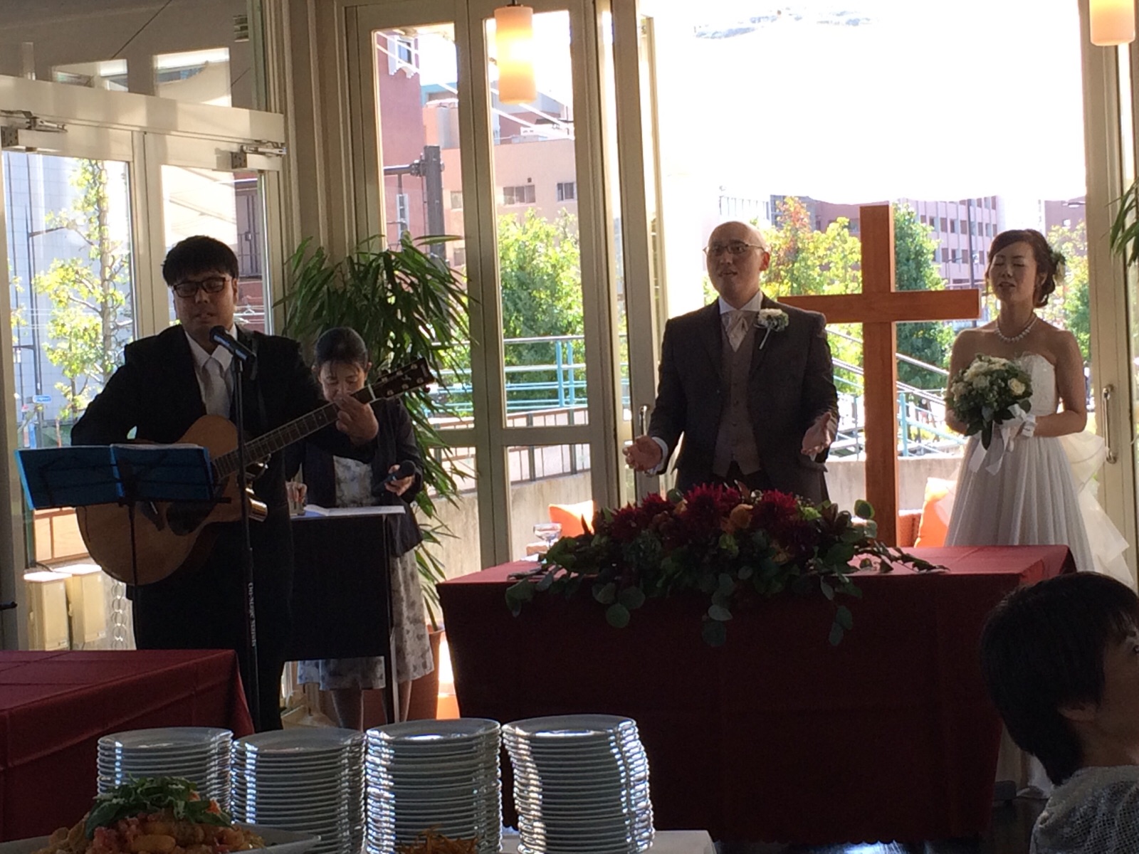 祝福いっぱいのなか披露宴が行われています♪(^^) 神のしもべ長崎教会 望