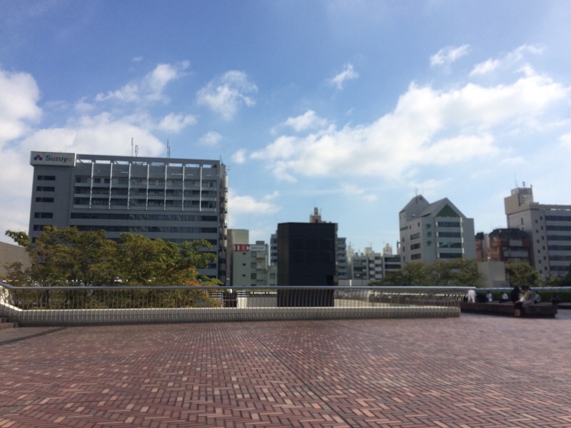 天気がいいので外に出てみました。 暑いぐらいの気温です。 隣のビルに広場に来てます。 ヨセフ