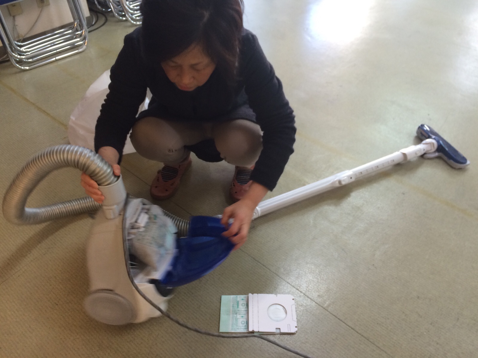 紙パックがいっぱいに… 取り替えています!
