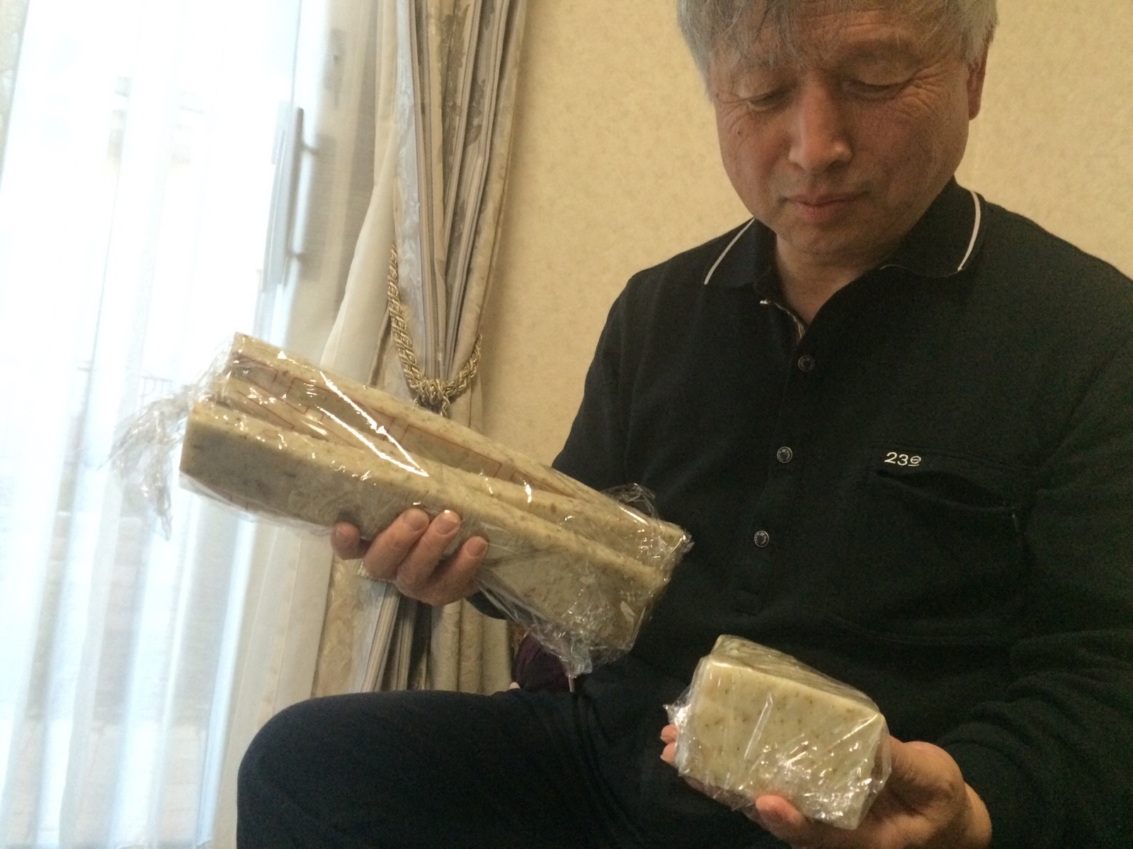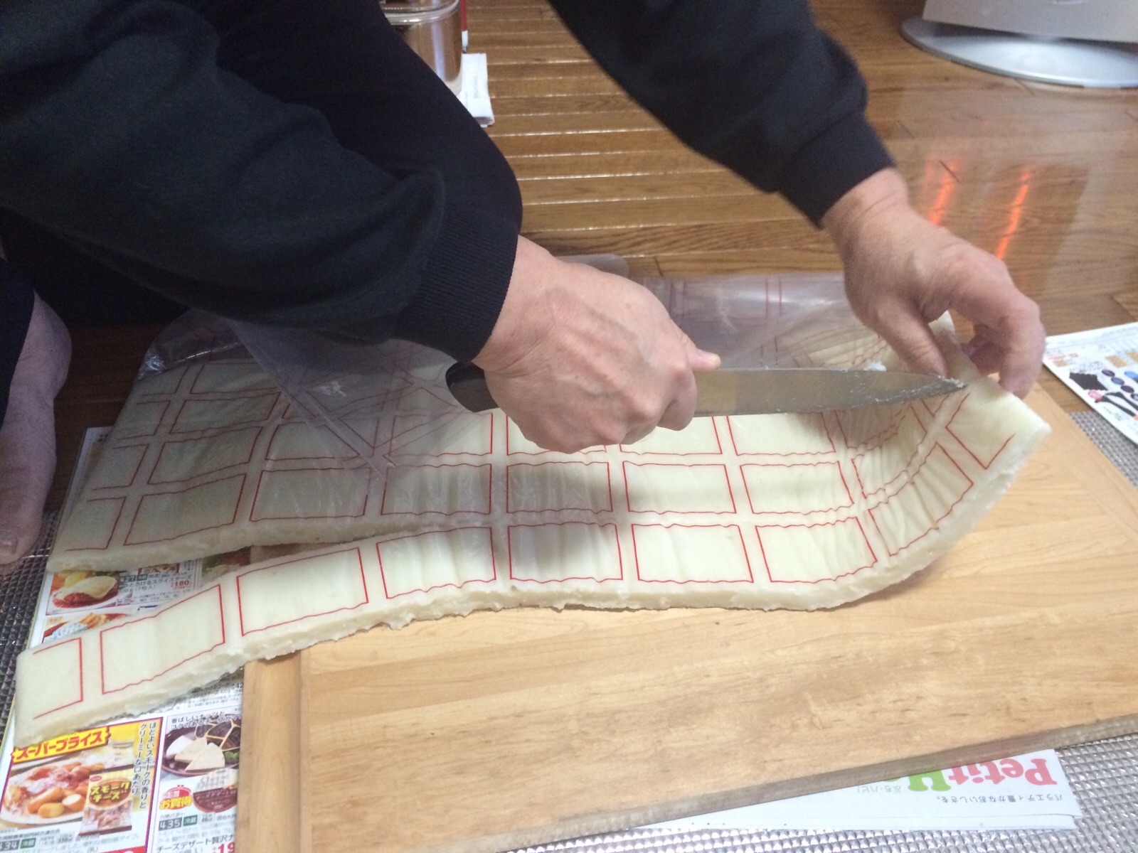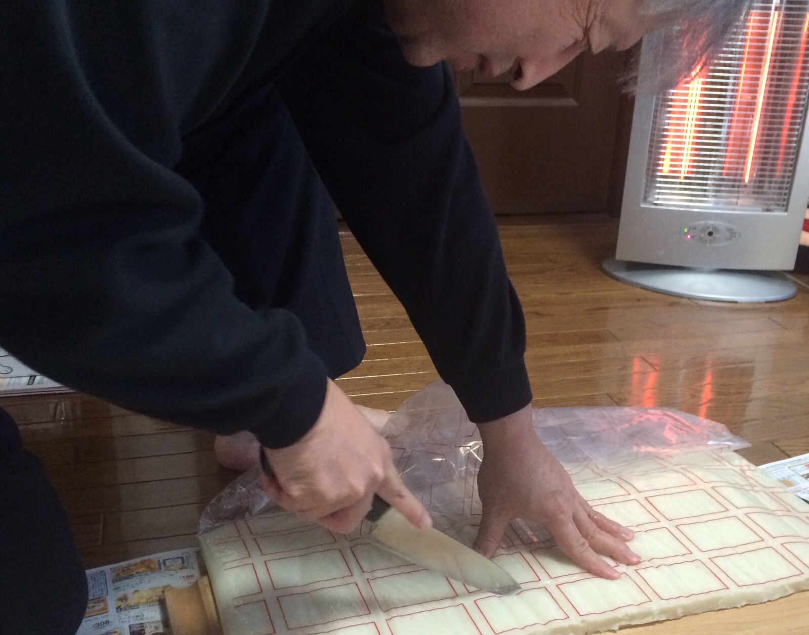 親戚からいただいた杵つき餅をカットしています! amagai