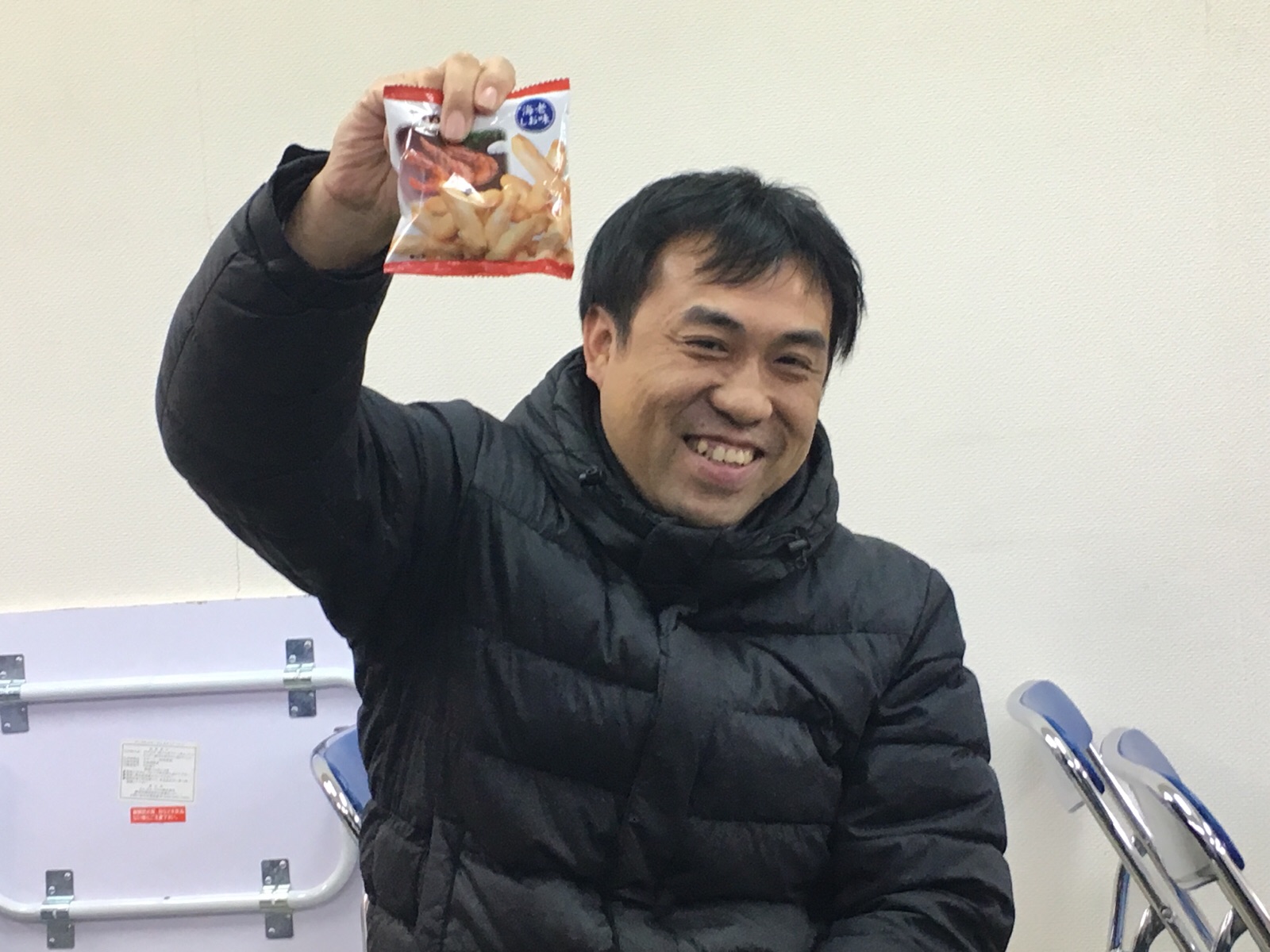お菓子GETしたヒサさん!