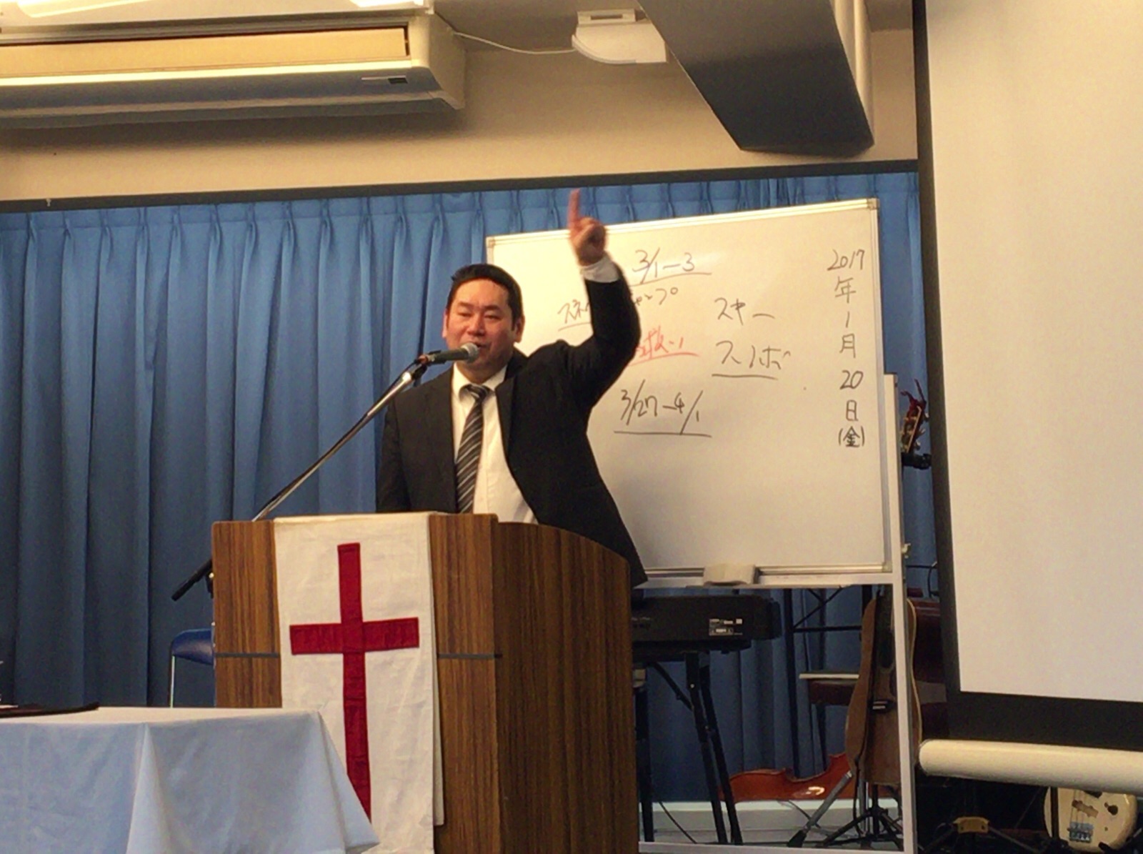会堂では金曜礼拝が行われています。メッセージは、ゴスペルグループのキブツと、まじきなりーのブログもしていらっしゃる、ペテロ真境名さんです!