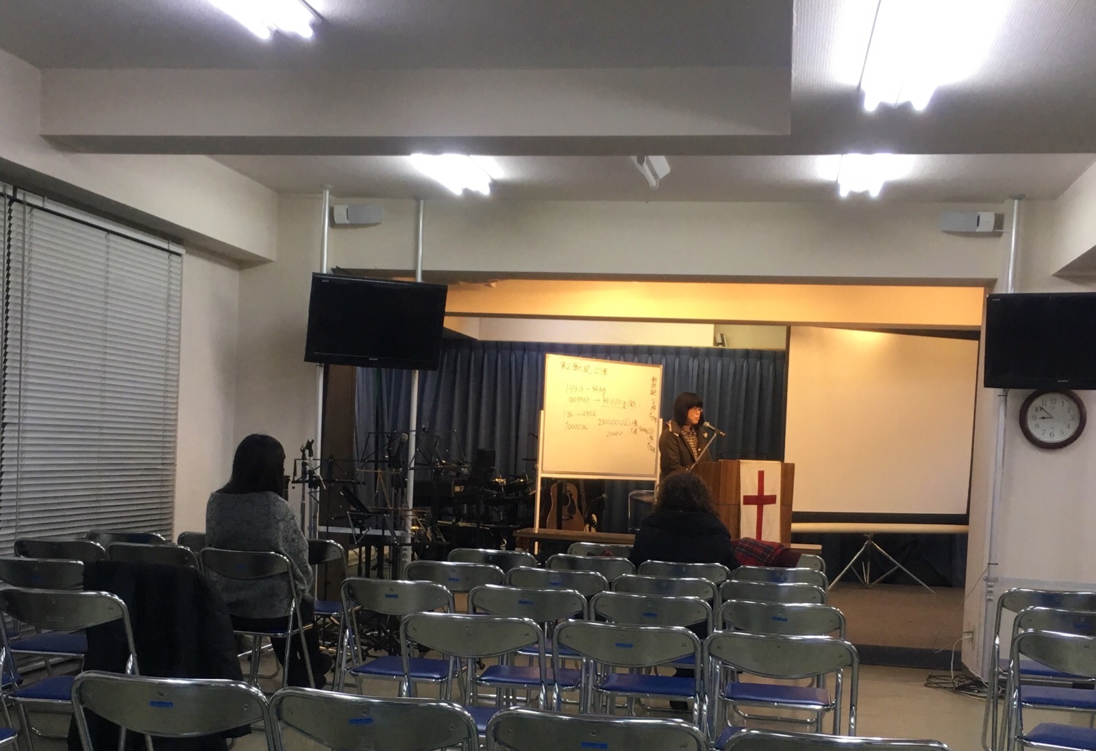 お証しの時間。みきちゃん、くりちゃんがお証し。 水曜祈祷会