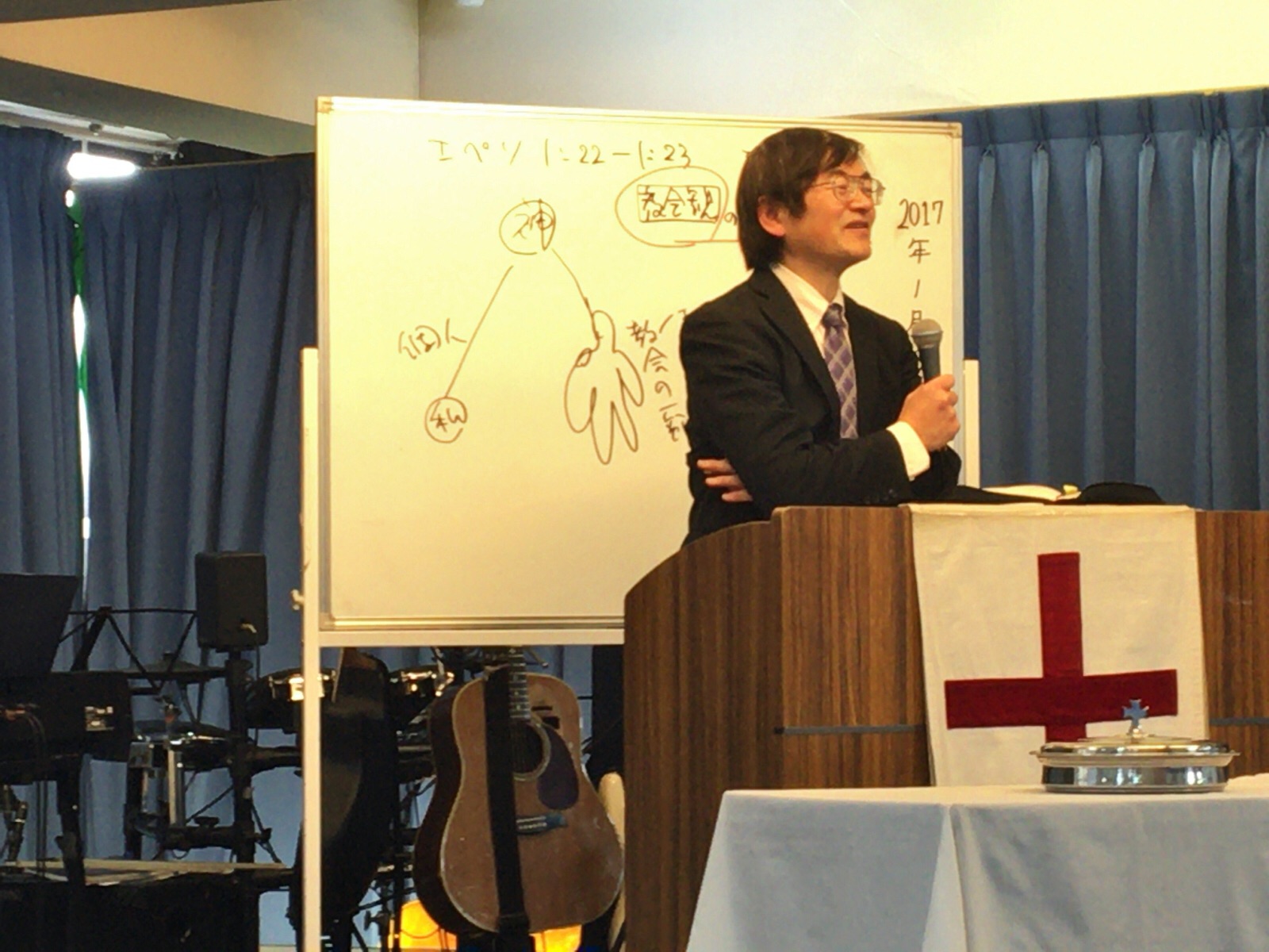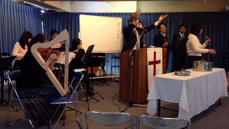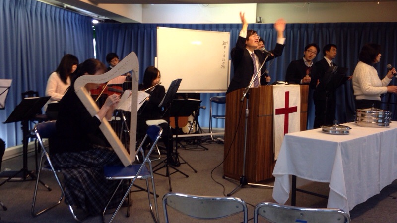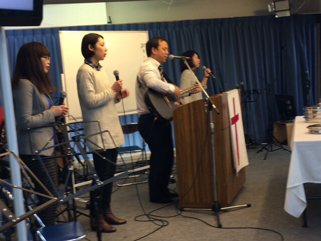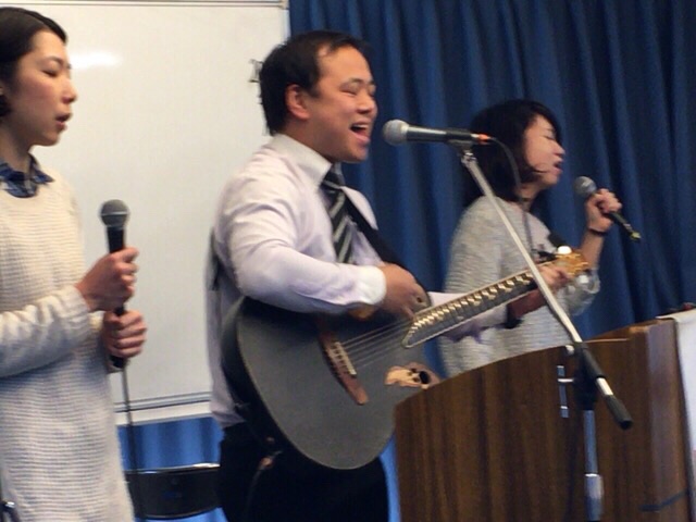賛美をもって主をたたえます。 賛美リーダーはジョセフ前田さんです。